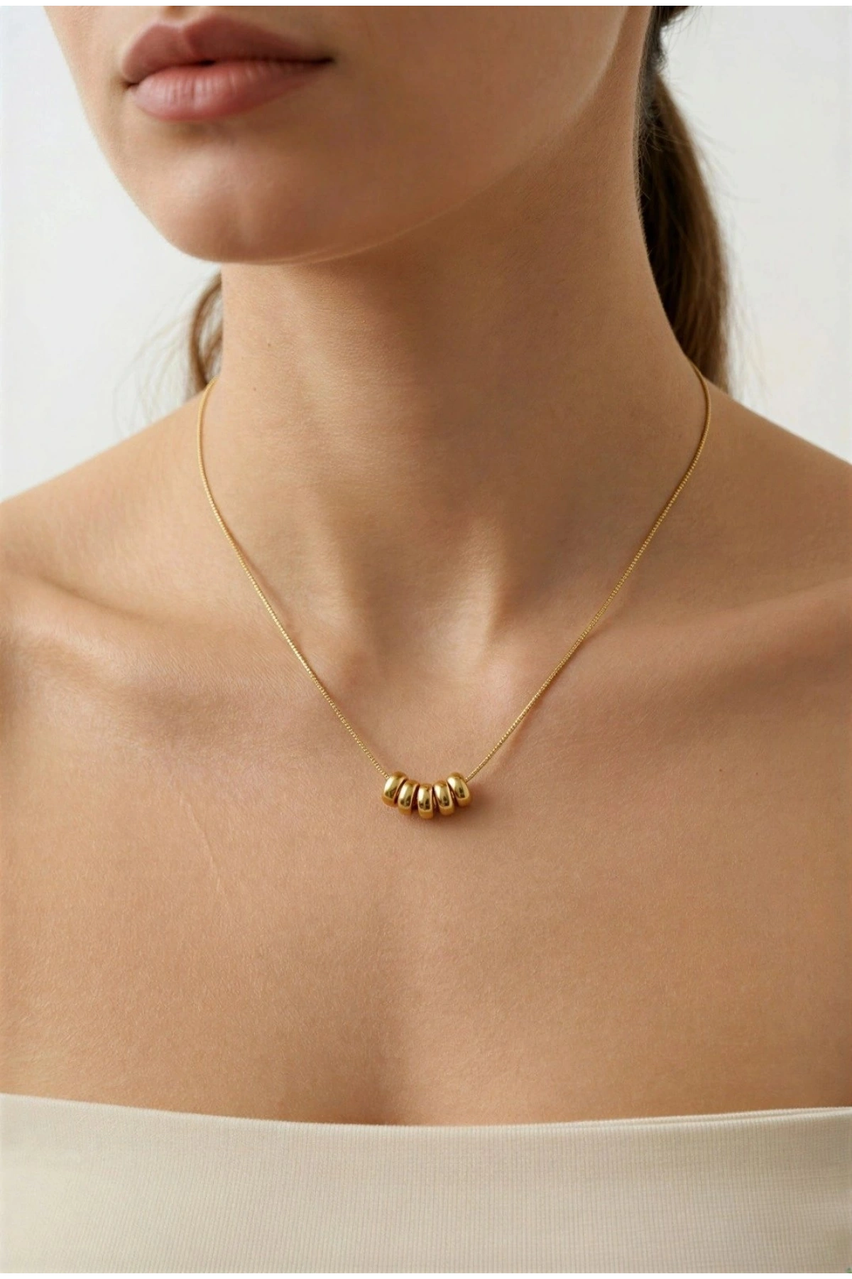 Altı Boncuk Zincir Model Gold Altın Kaplama Kolye