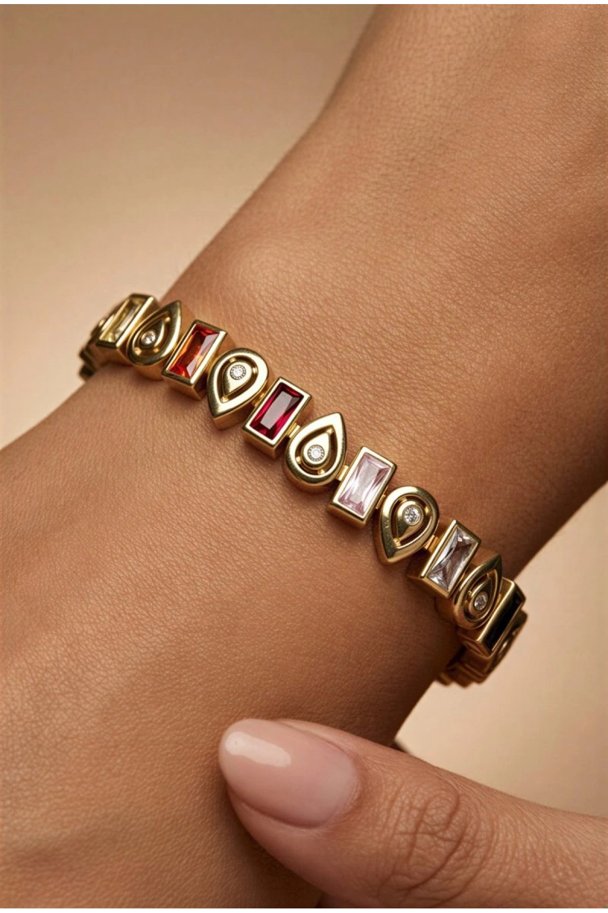 Asimetrik Renkli Damla Model Gold Altın Kaplama Bileklik