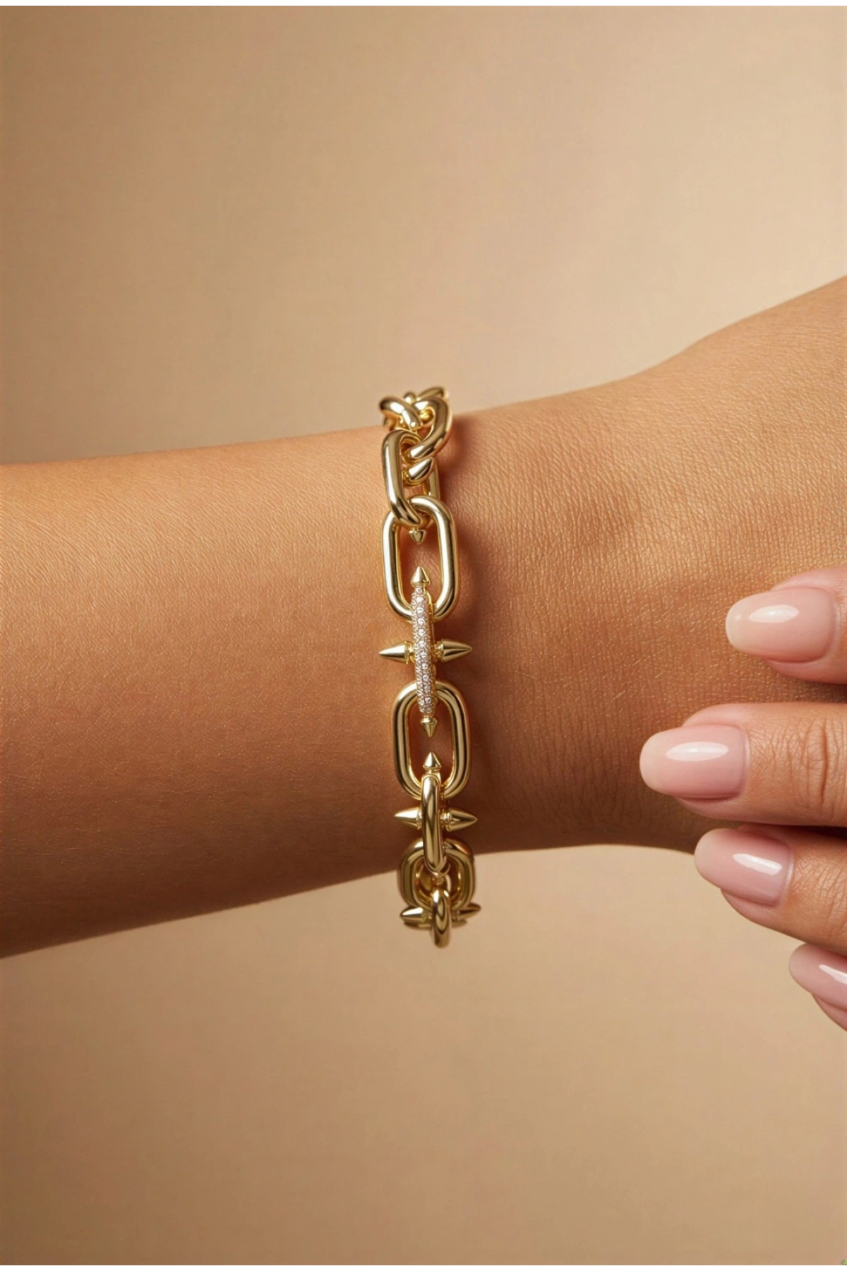 Ataç Zincir Taş Detay Koni Model Gold Altın Kaplama Bileklik