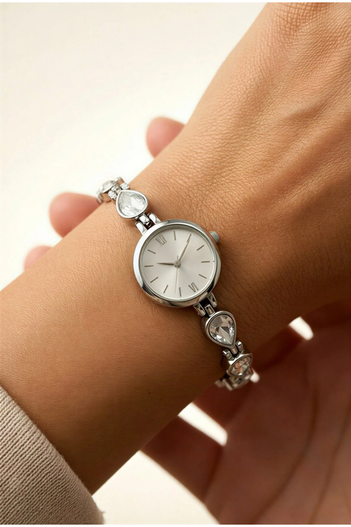Beyaz Kordon Beyaz Kadran Damla Detay Kadın Kol Saati