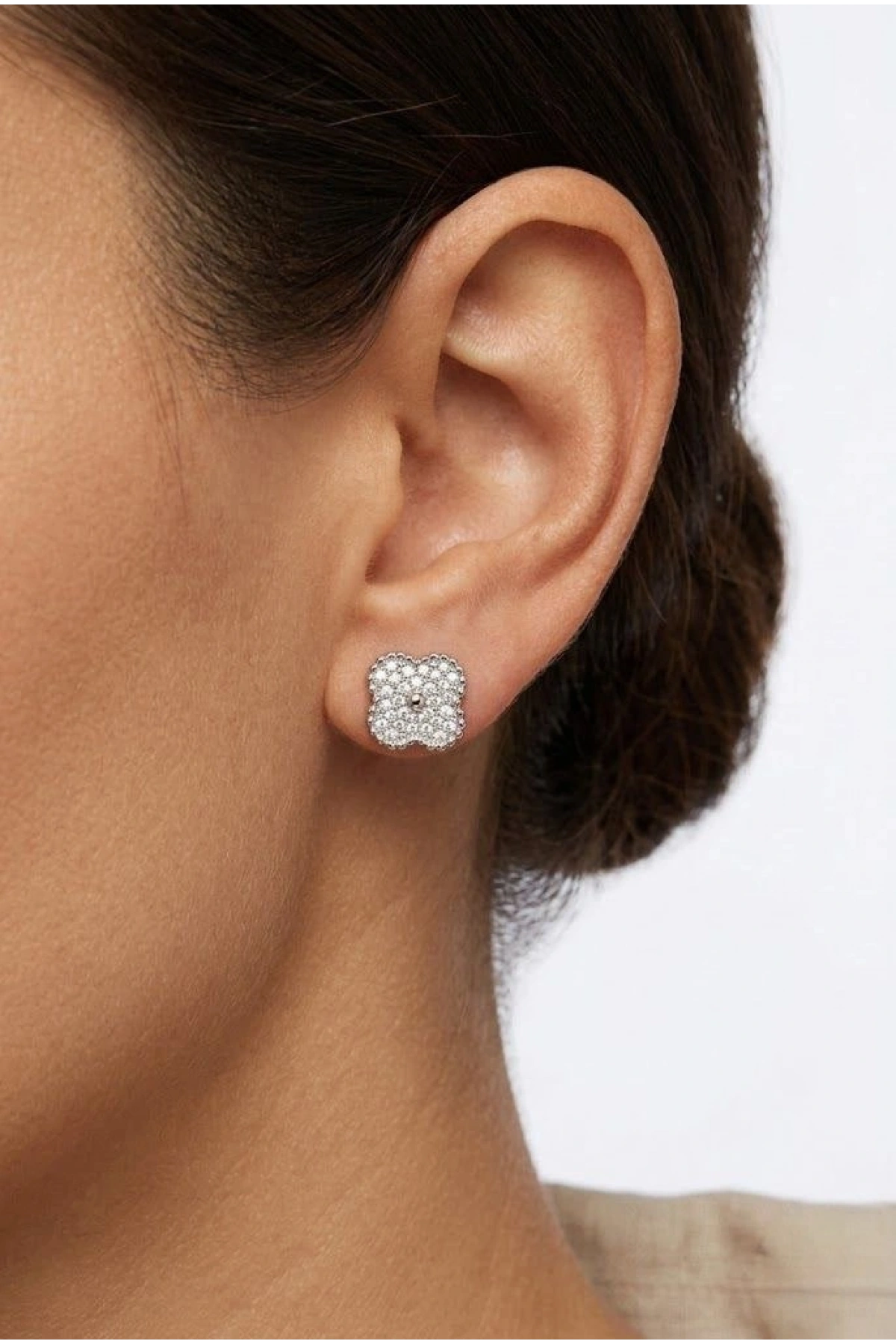 Beyaz Yonca Model Gold Altın Kaplama Küpe