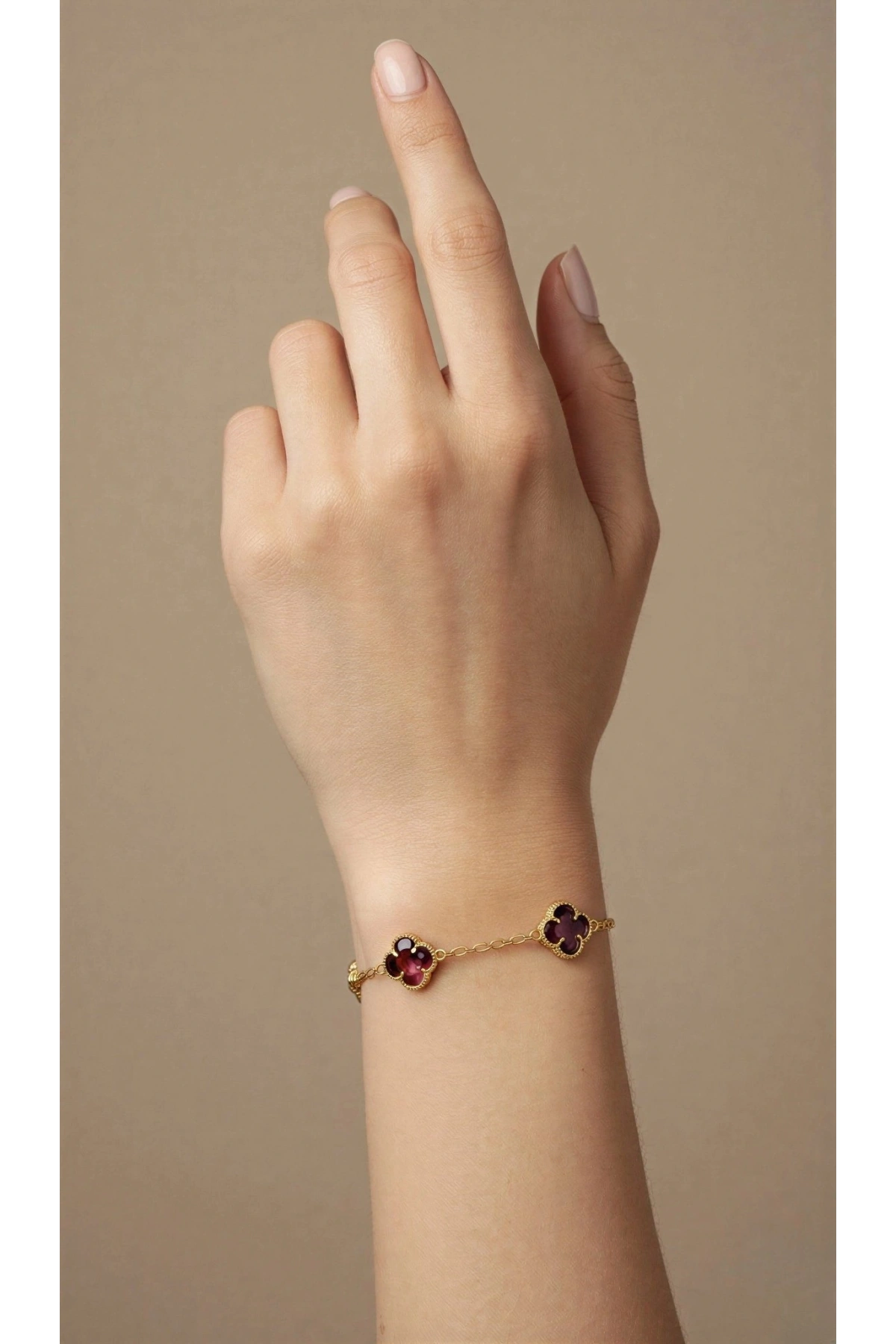 Bordo Renk Yonca Detay Gold Altın Kaplama Bileklik