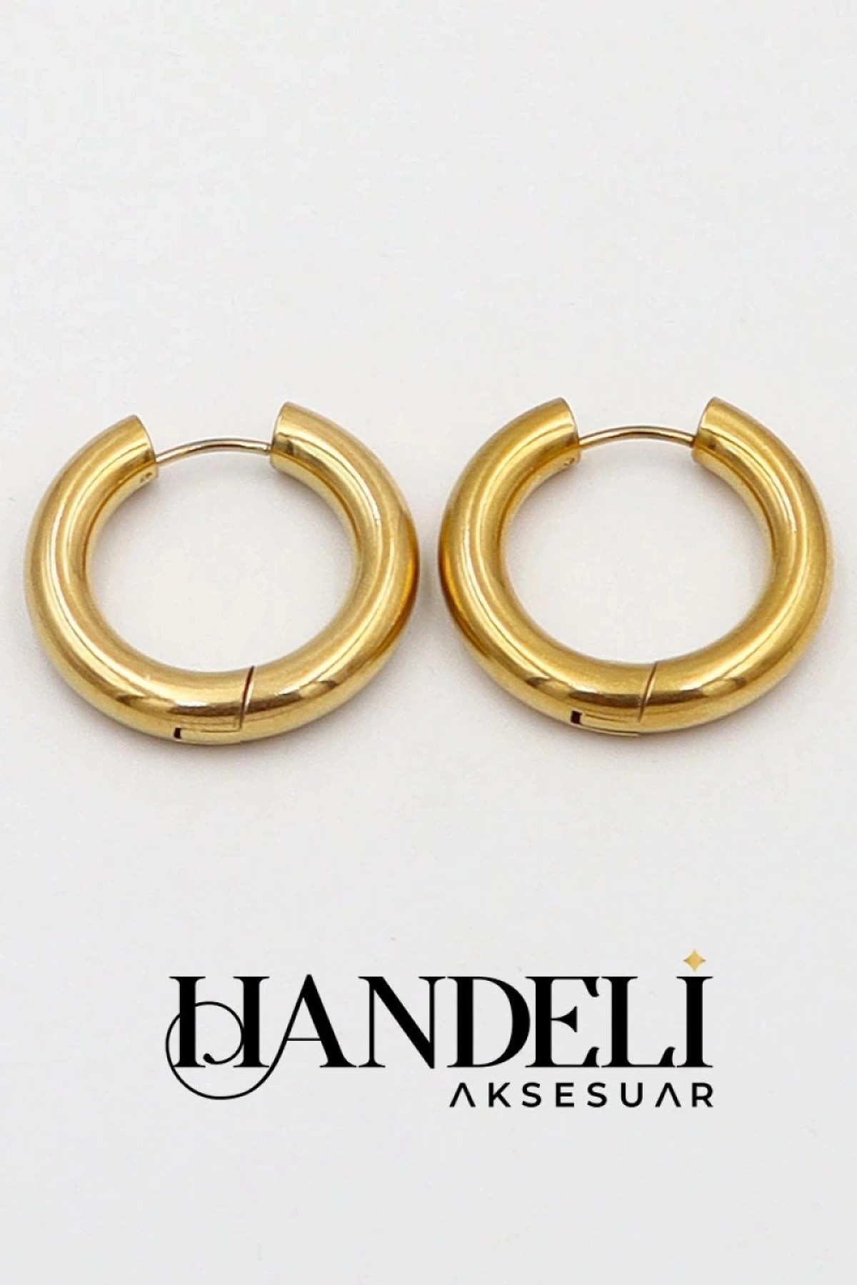 Boru Model Orta Çelik Gold Altın Kaplama Küpe