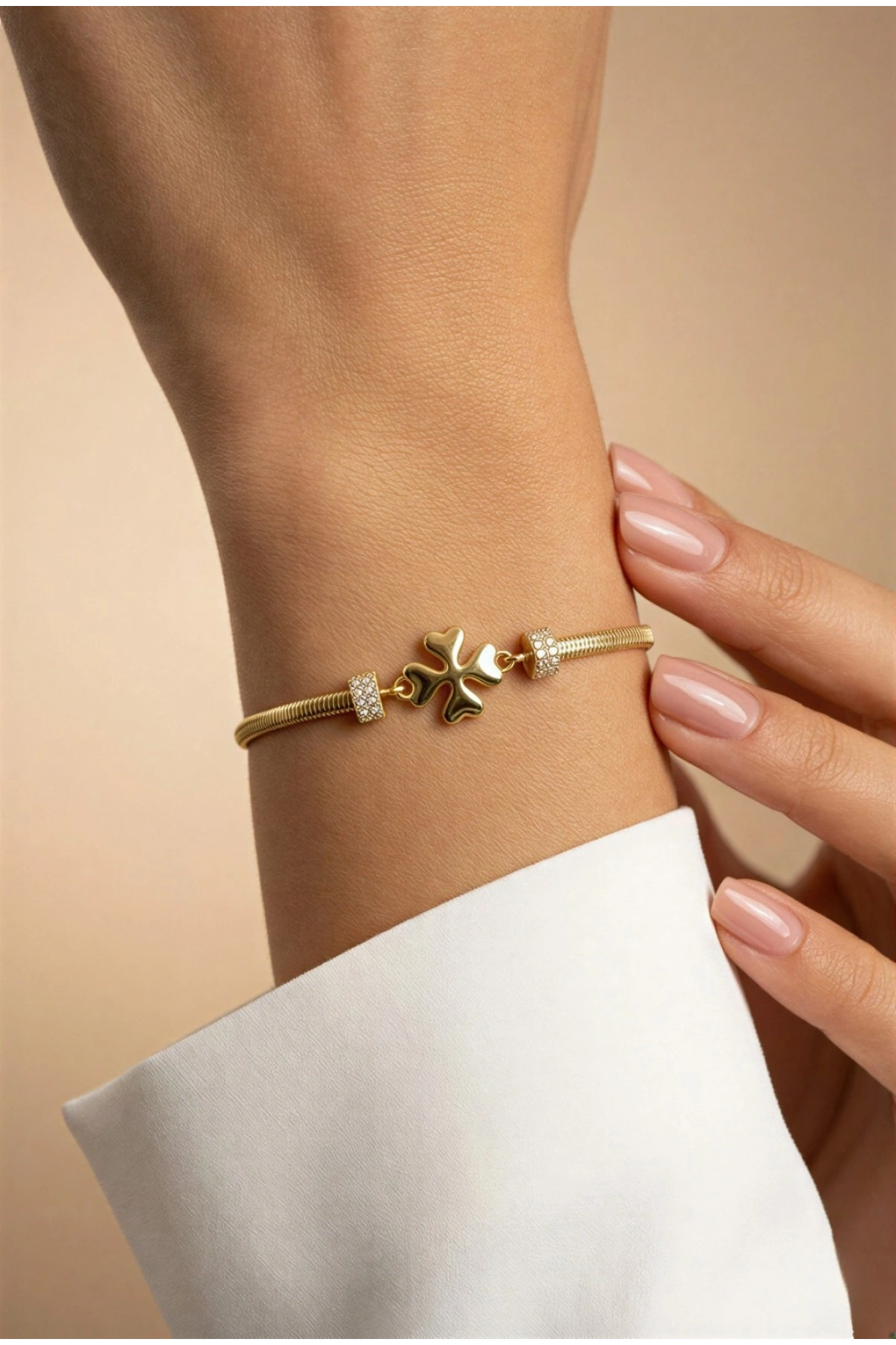 Boru Zincir Yonca Model Gold Altın Kaplama Bileklik