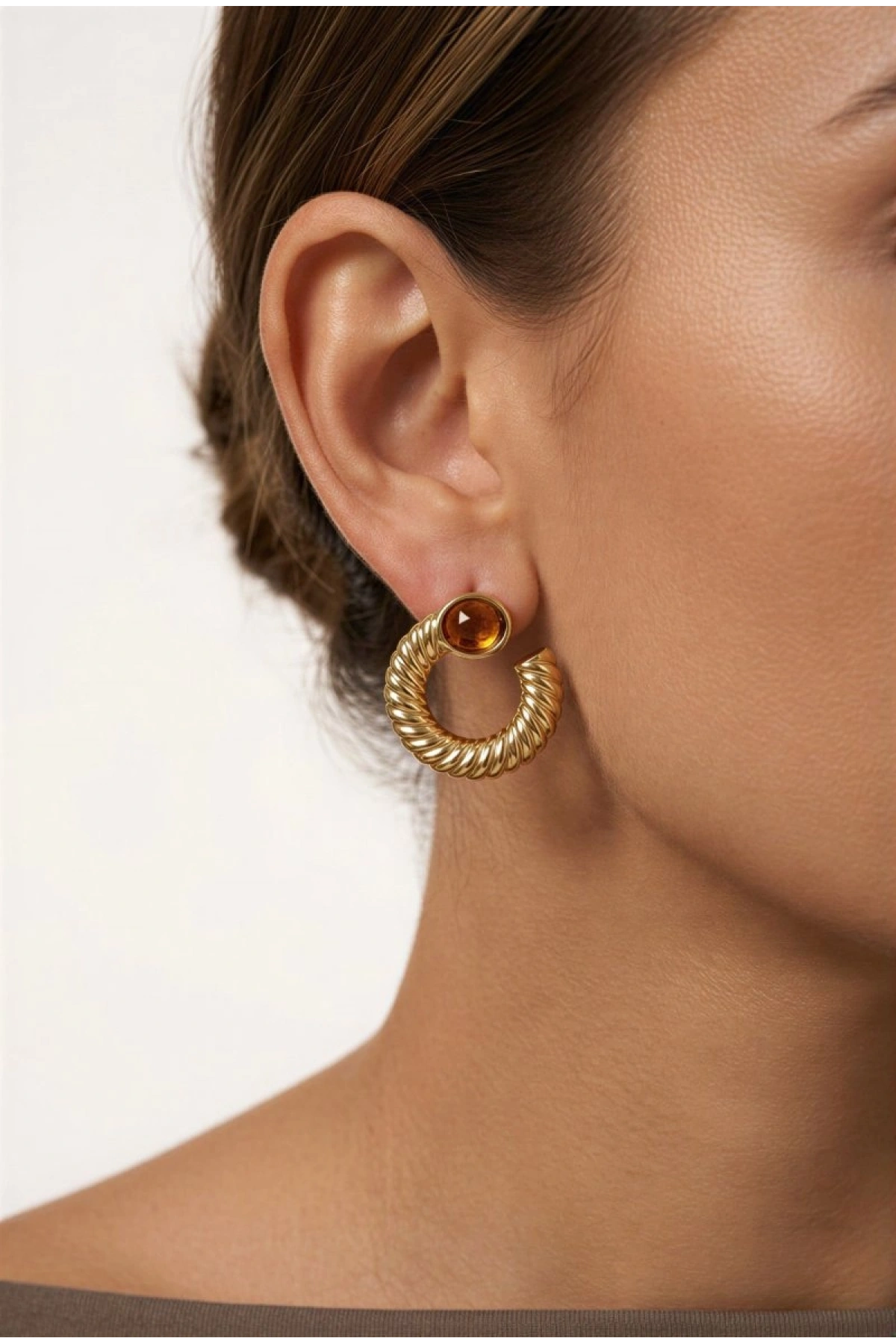 Burgu Model Taş Detay Gold Altın Kaplama Küpe