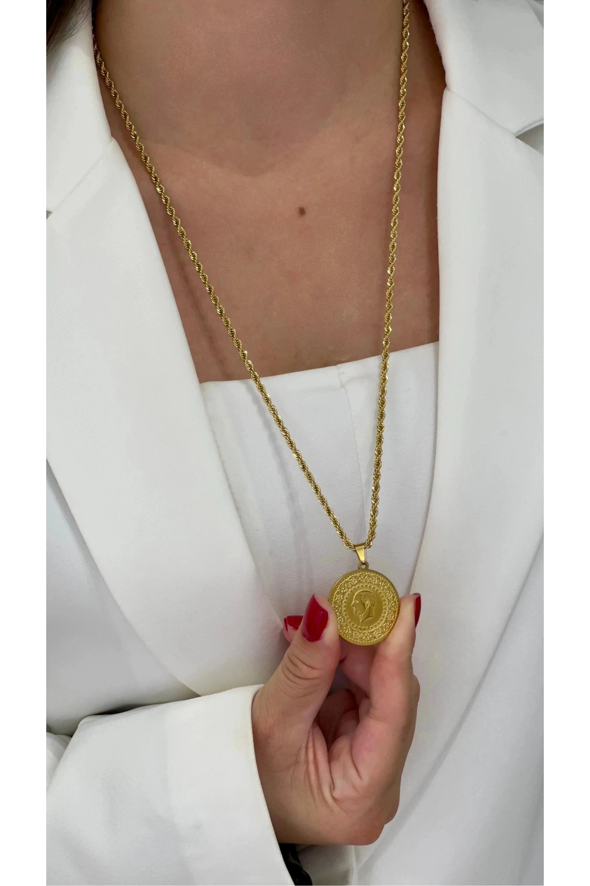 Burgu Zincir Ata Altın Boncuklu Çeyrek Gold Altın Kaplama Kolye