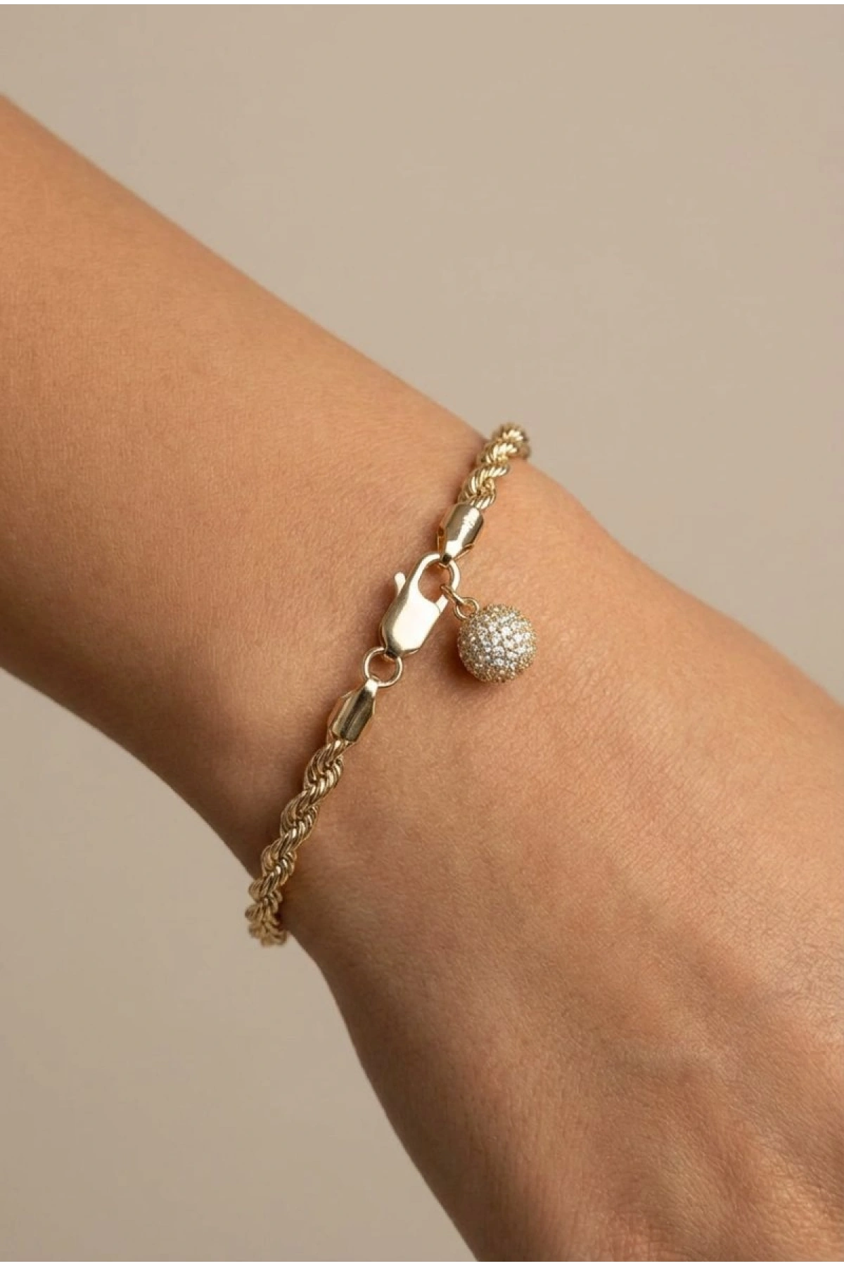 Burgu Zincir Taşlı Top Model Gold Altın Kaplama Bileklik