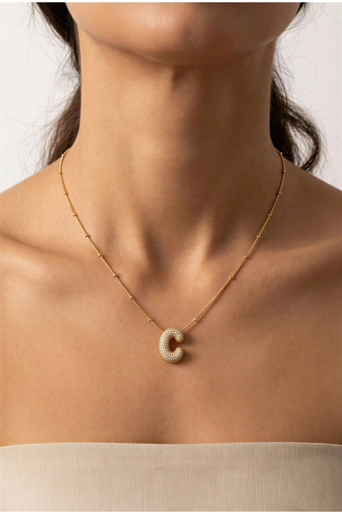 C Harf Zirkon Taşlı Balon Gold Altın Kaplama Dorika Kolye