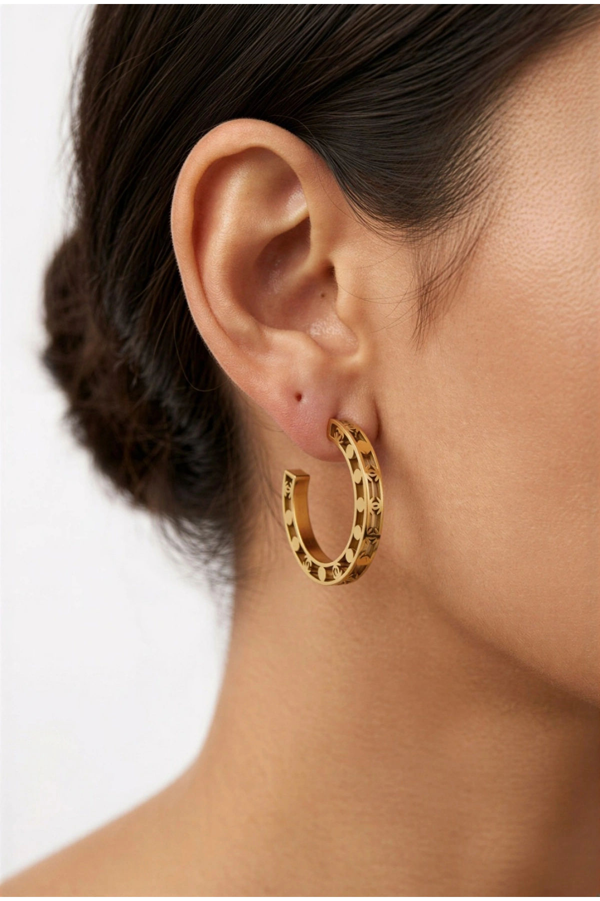 C Model Yarım Halka Çelik Gold Altın Kaplama Küpe