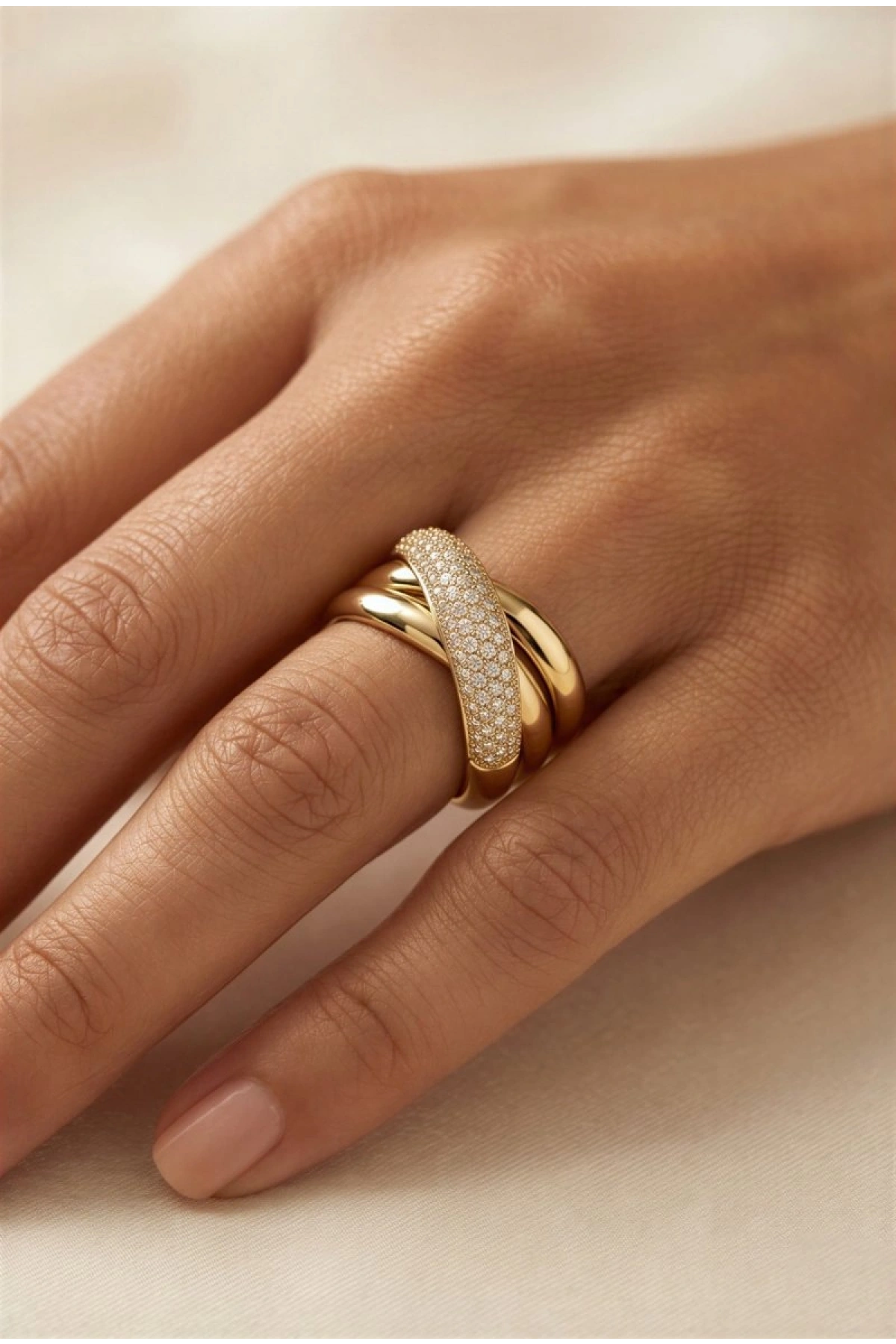 Çapraz Geçiş Model Gold Altın Kaplama Ayarlanabilir Yüzük