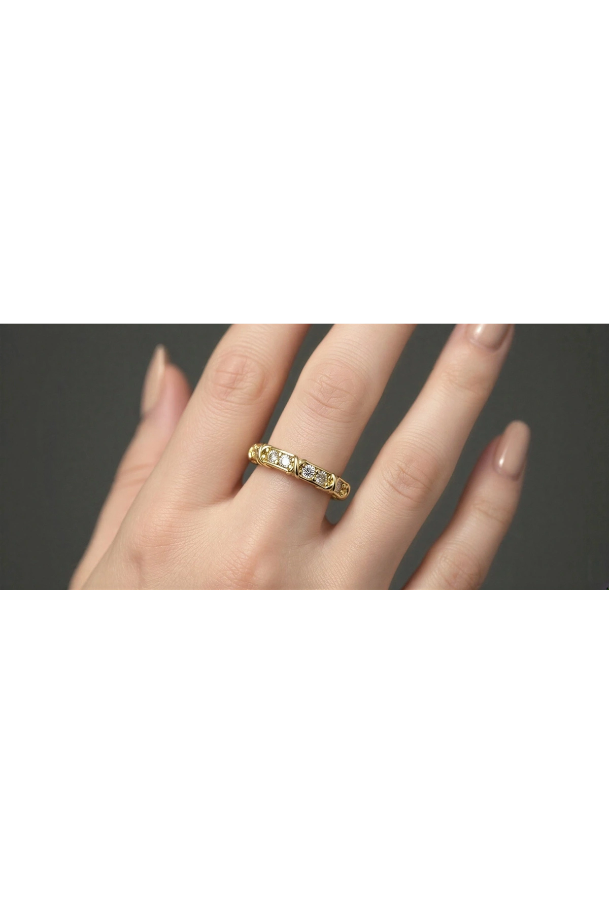 Çarpı Model Taş Detay Gold Altın Kaplama Yüzük
