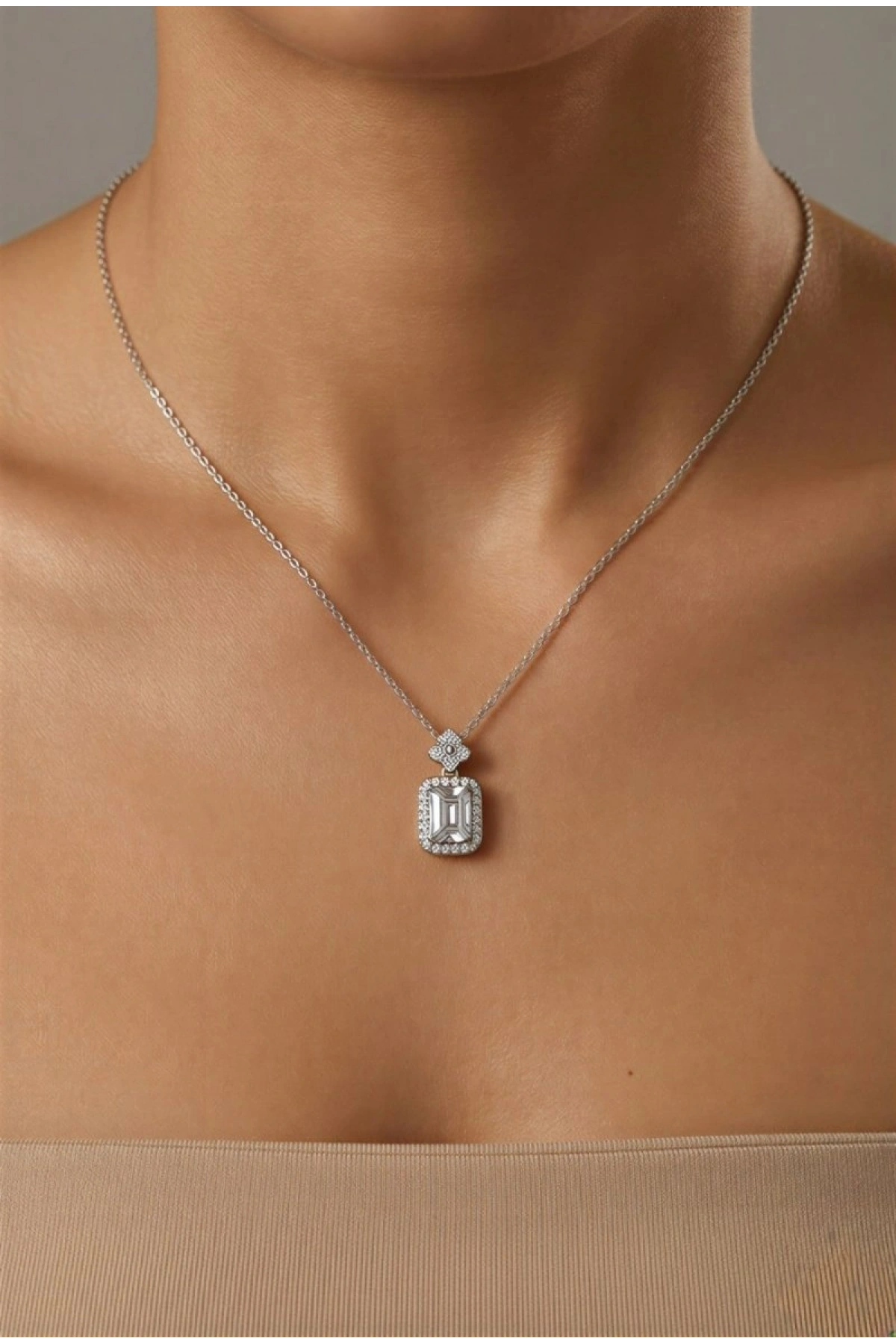 Çiçek Baget Model Zarif Beyaz Altın Kaplama Kolye
