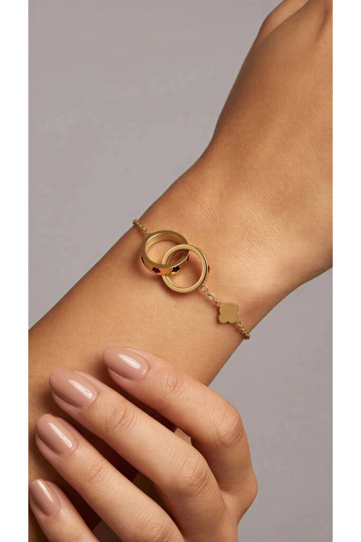 Çift Halka Model Gold Altın Kaplama Çelik Bileklik