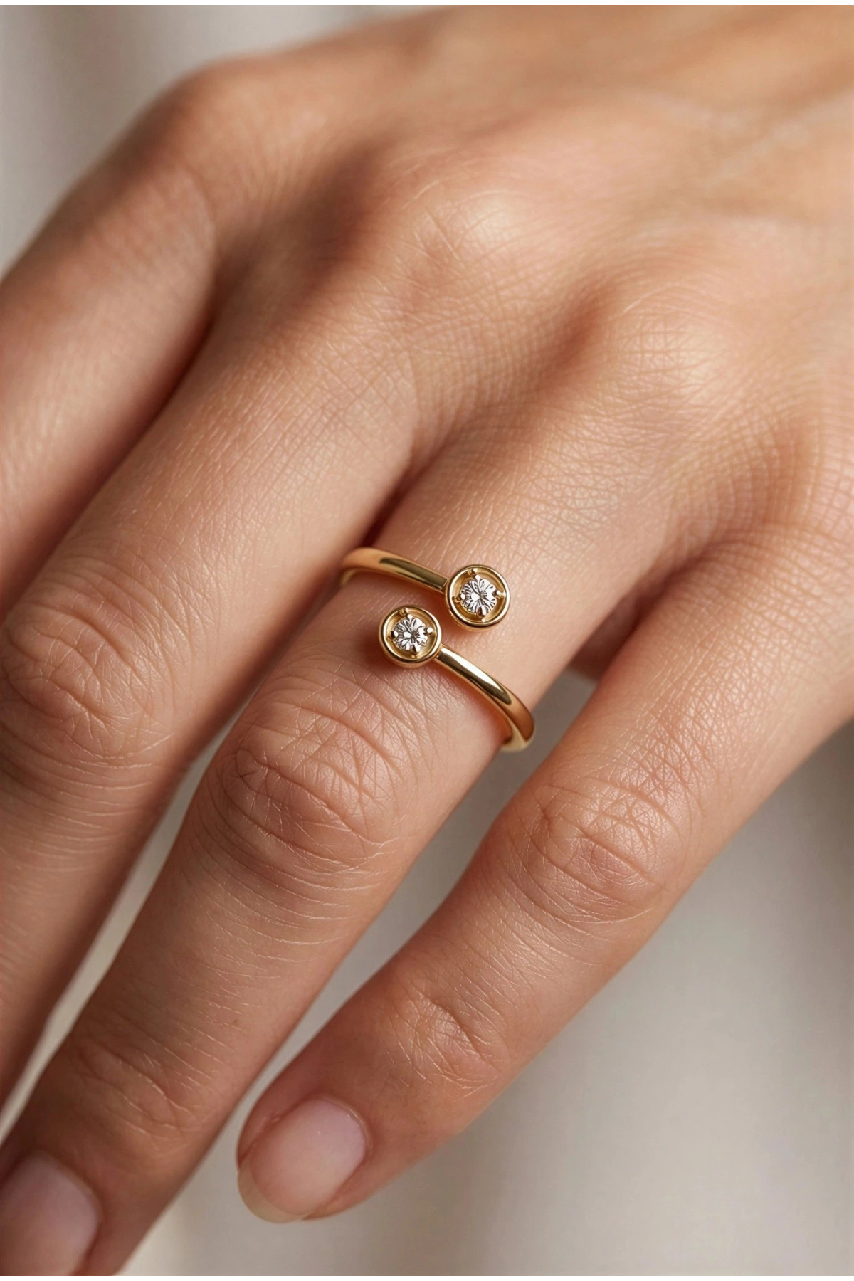 Çift Halka Model Gold Altın Kaplama Yüzük