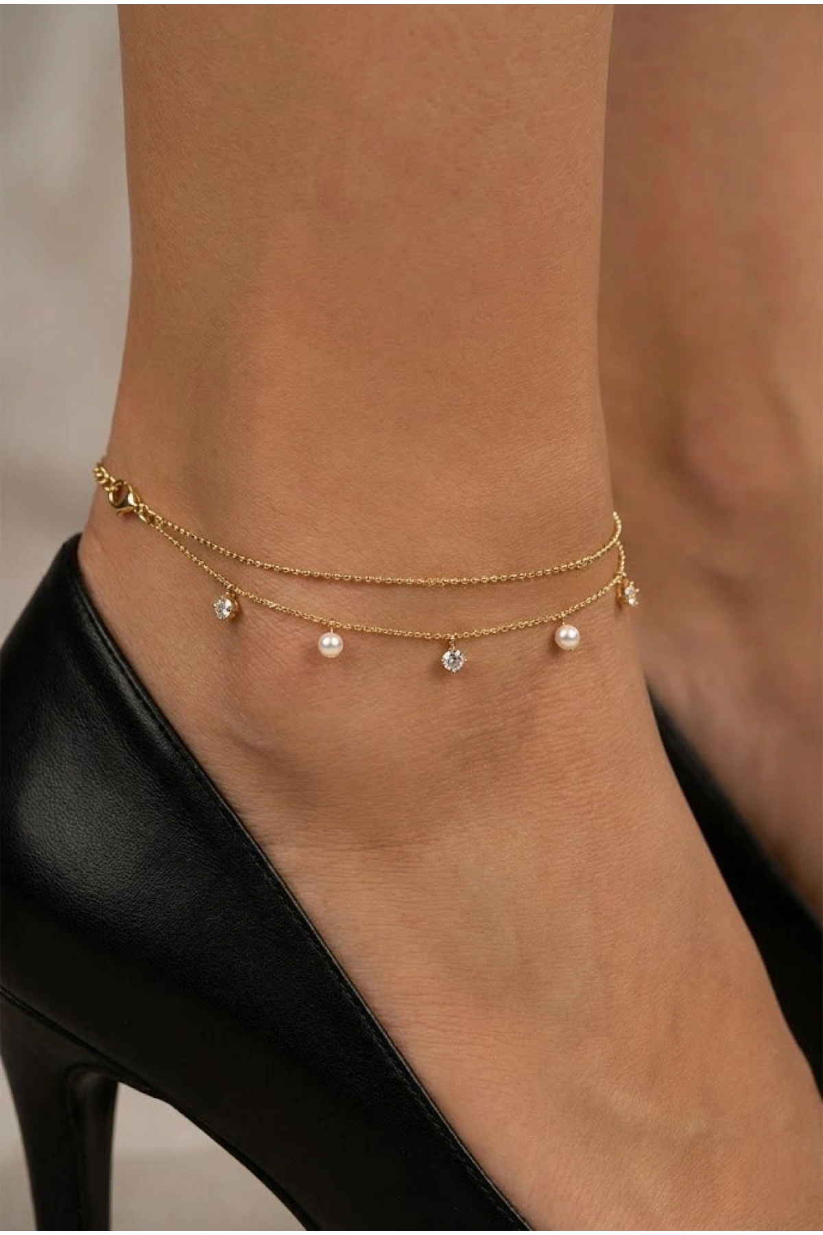 Çift Sıra İnci Model Gold Altın Kaplama Halhal