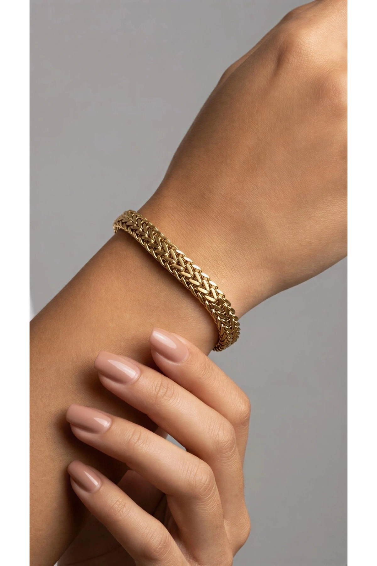 Çift Sıra Sırma Model Gold Altın Kaplama Çelik Bileklik