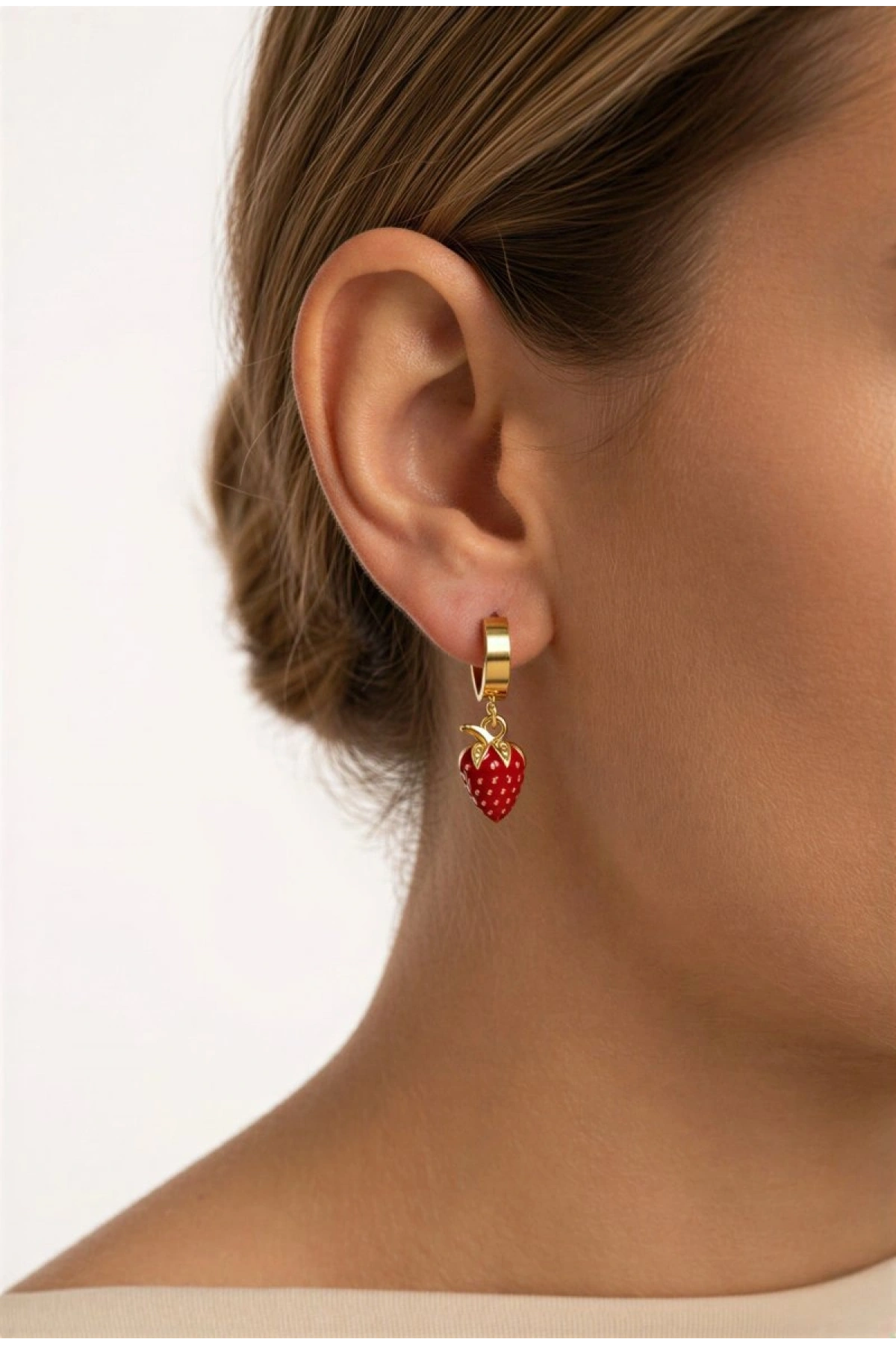 Çilek Model Gold Altın Kaplama Küpe