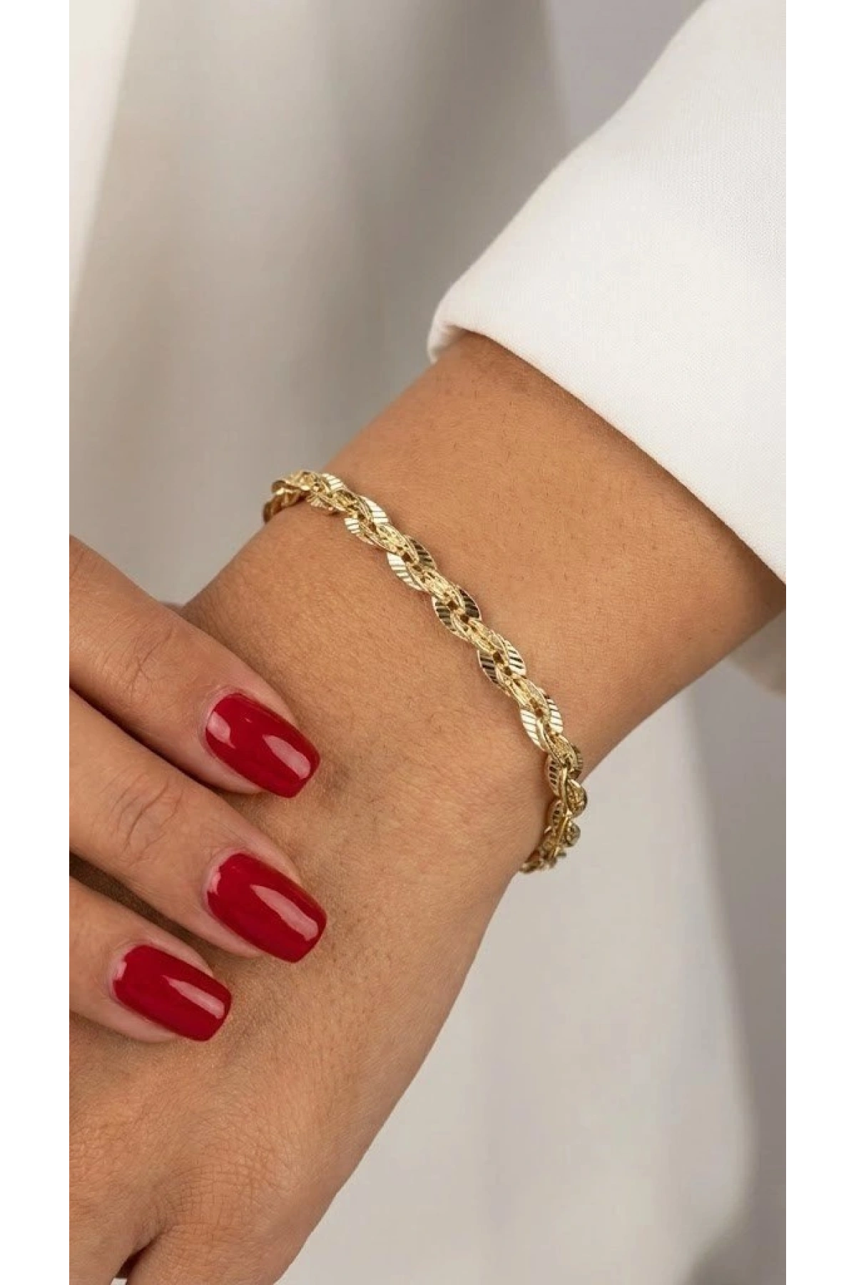 Çizgi Desen İç İçe Pul Detay Gold Altın Kaplama Bileklik