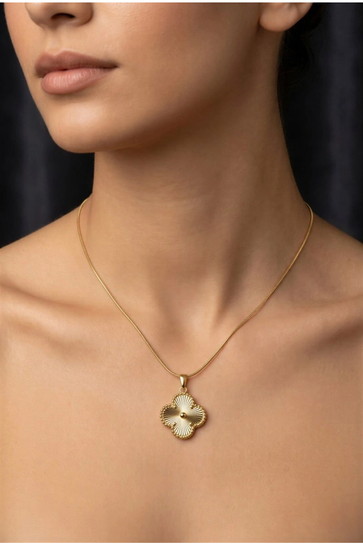 Çizgi Detay Yonca Model Gold Altın Kaplama Kolye