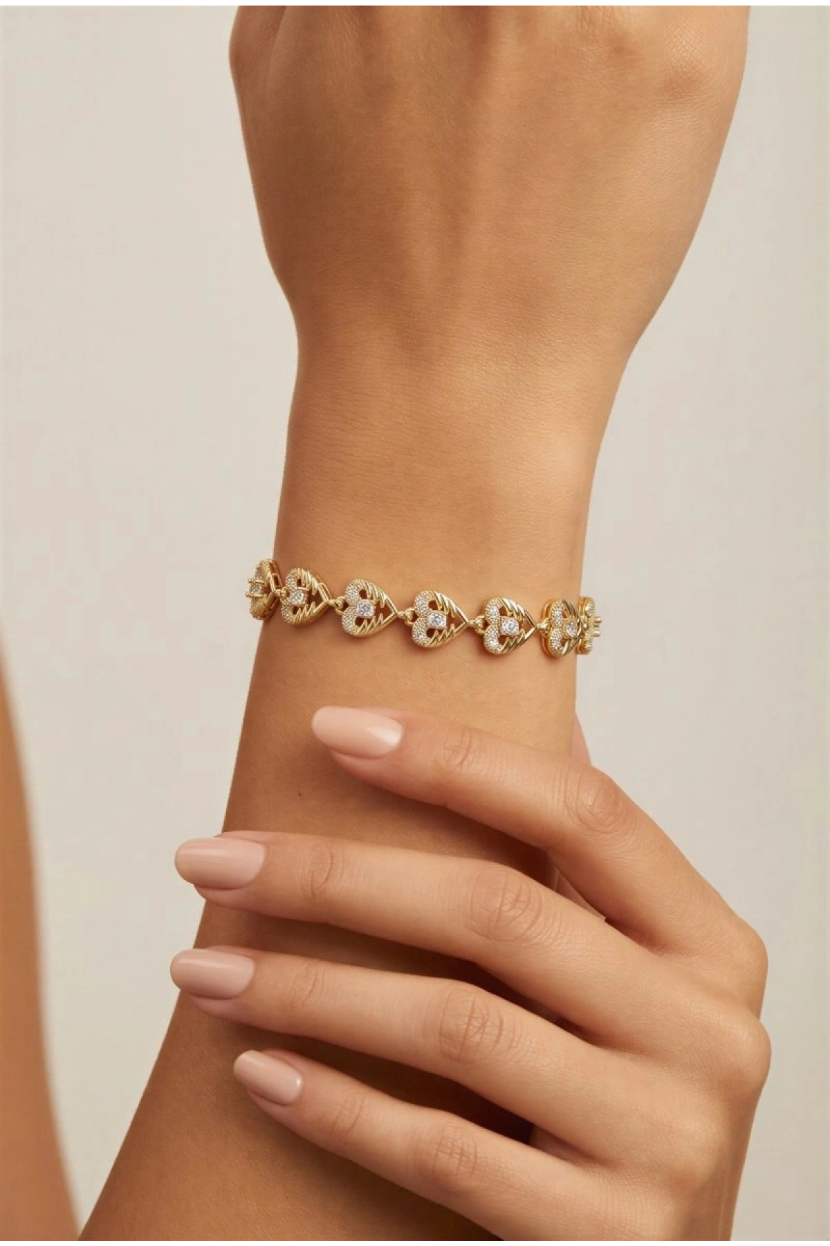 Çizgili Kalp Model Gold Altın Kaplama Bileklik
