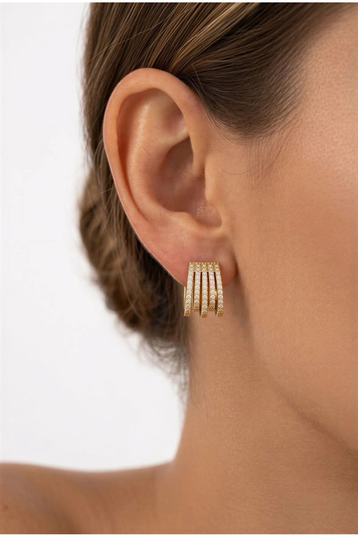Çoklu Halka Model Gold Altın Kaplama Küpe