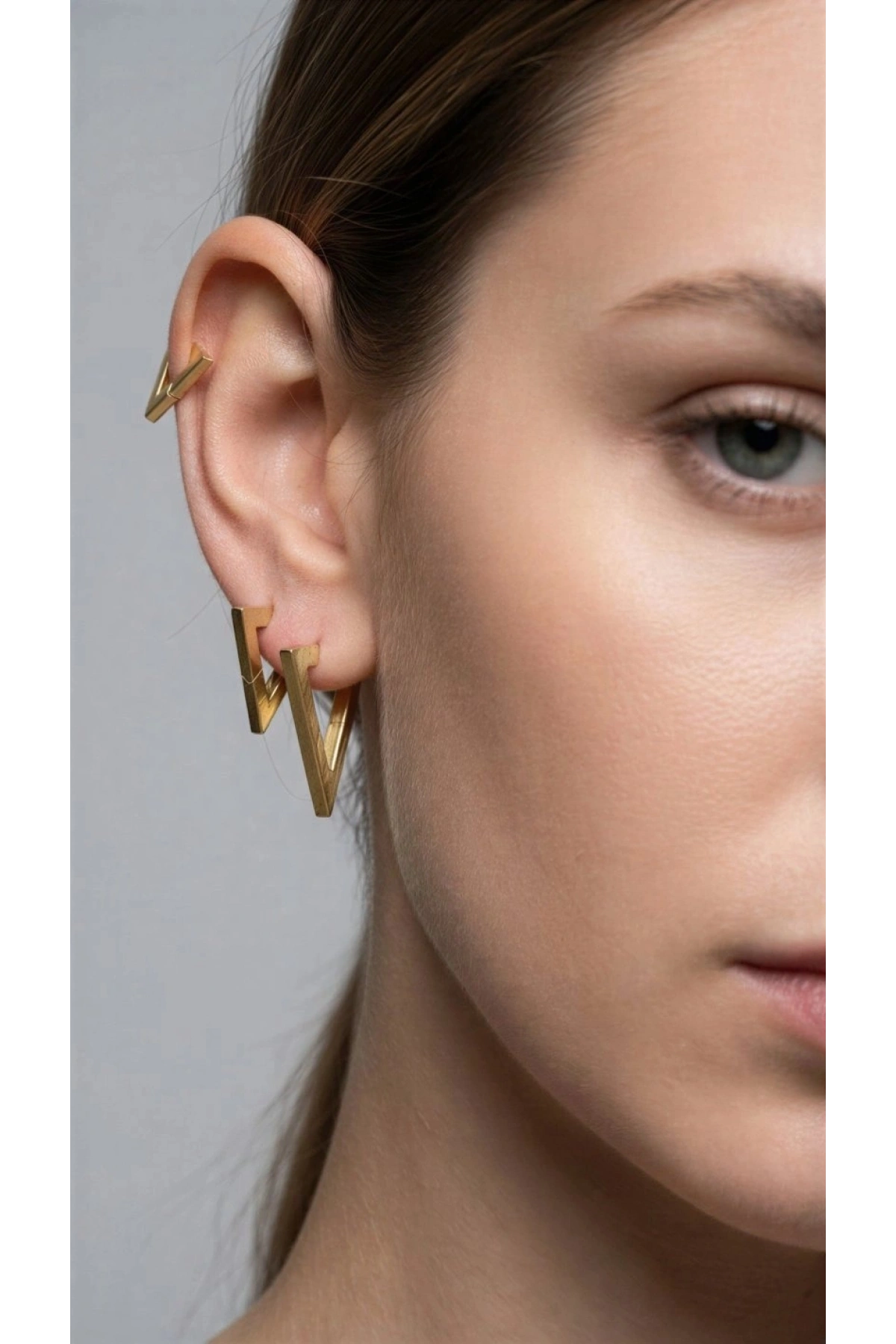 Çoklu Üçgen Model Gold Altın Kaplama Çelik Küpe