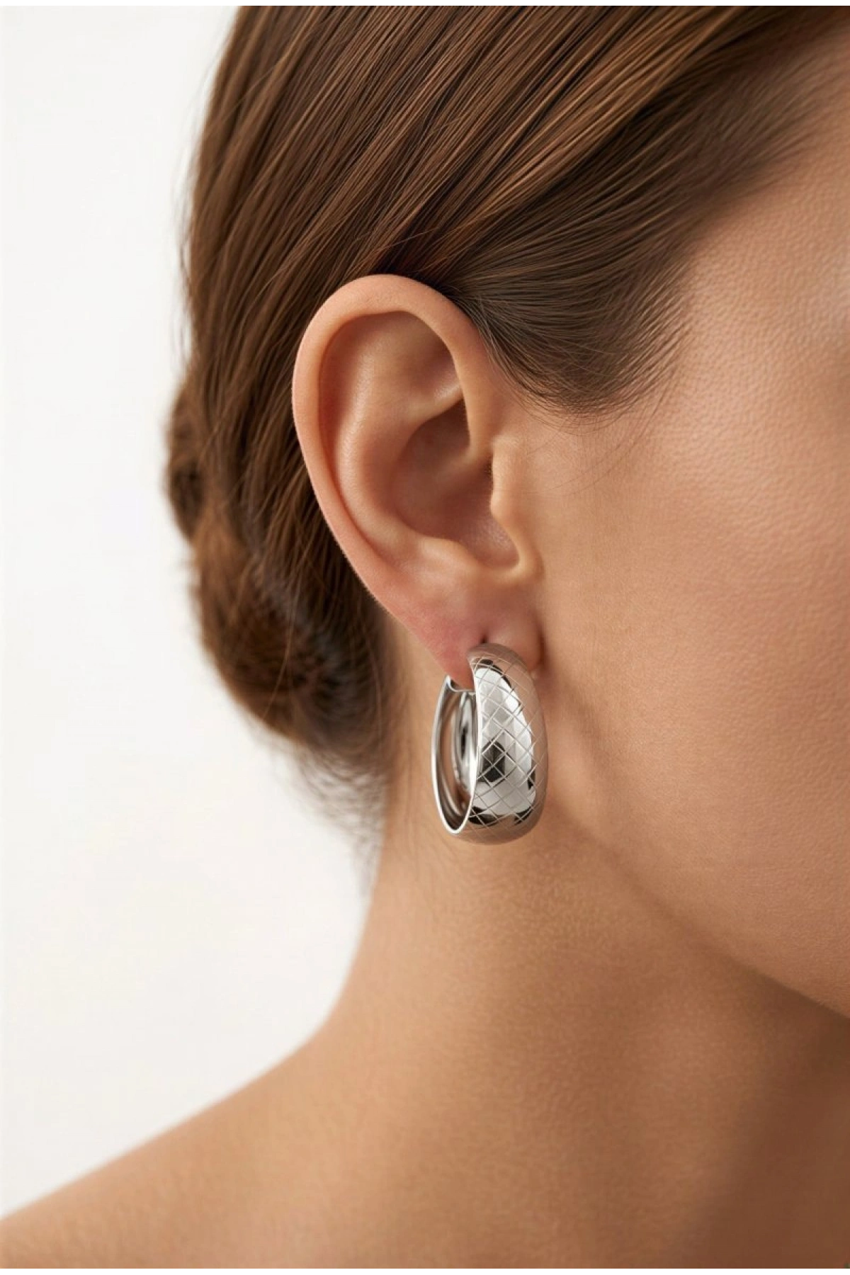 Cross Model Beyaz Altın Kaplama Küpe