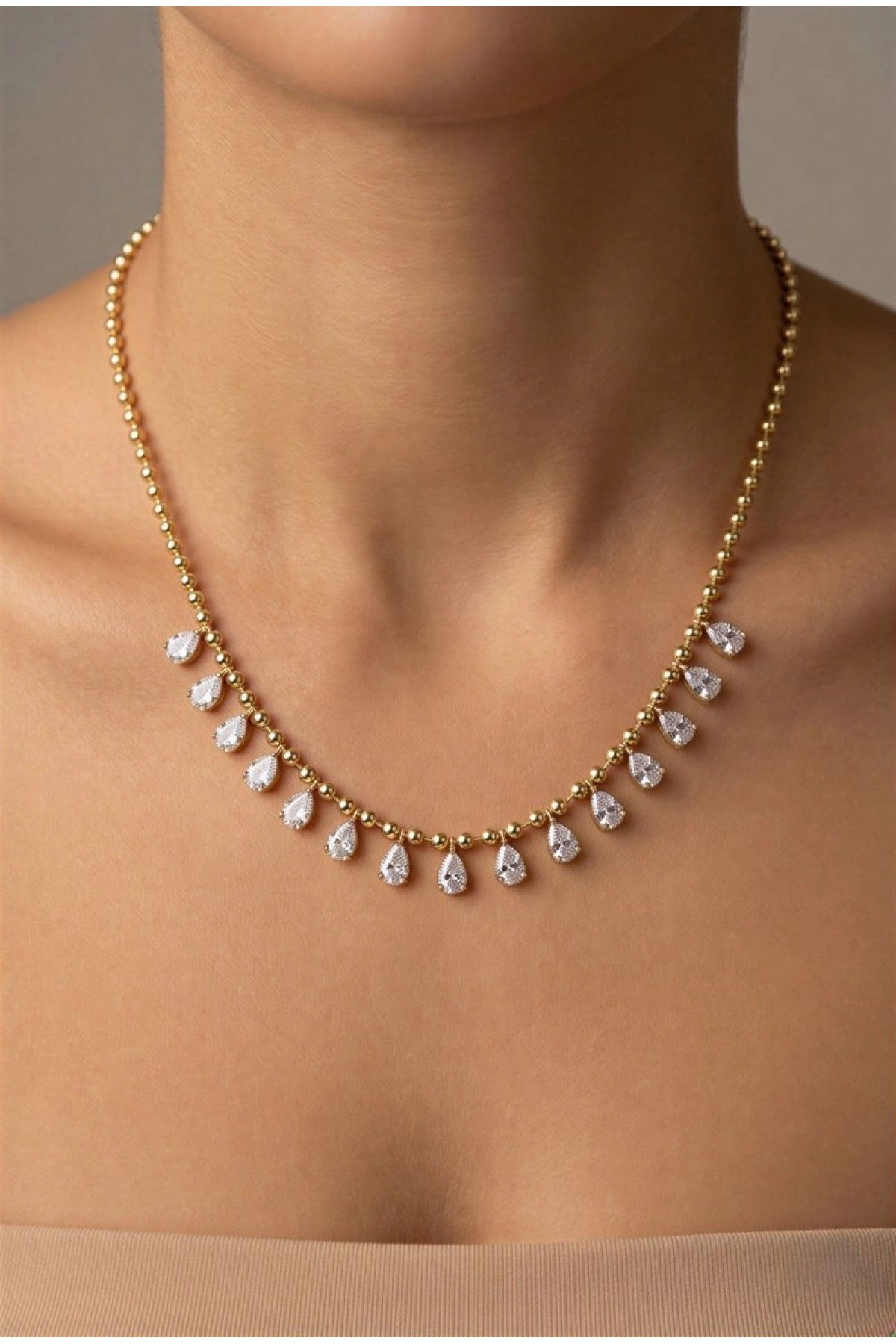 Damla Taş Model Gold Altın Kaplama Dorika Kolye