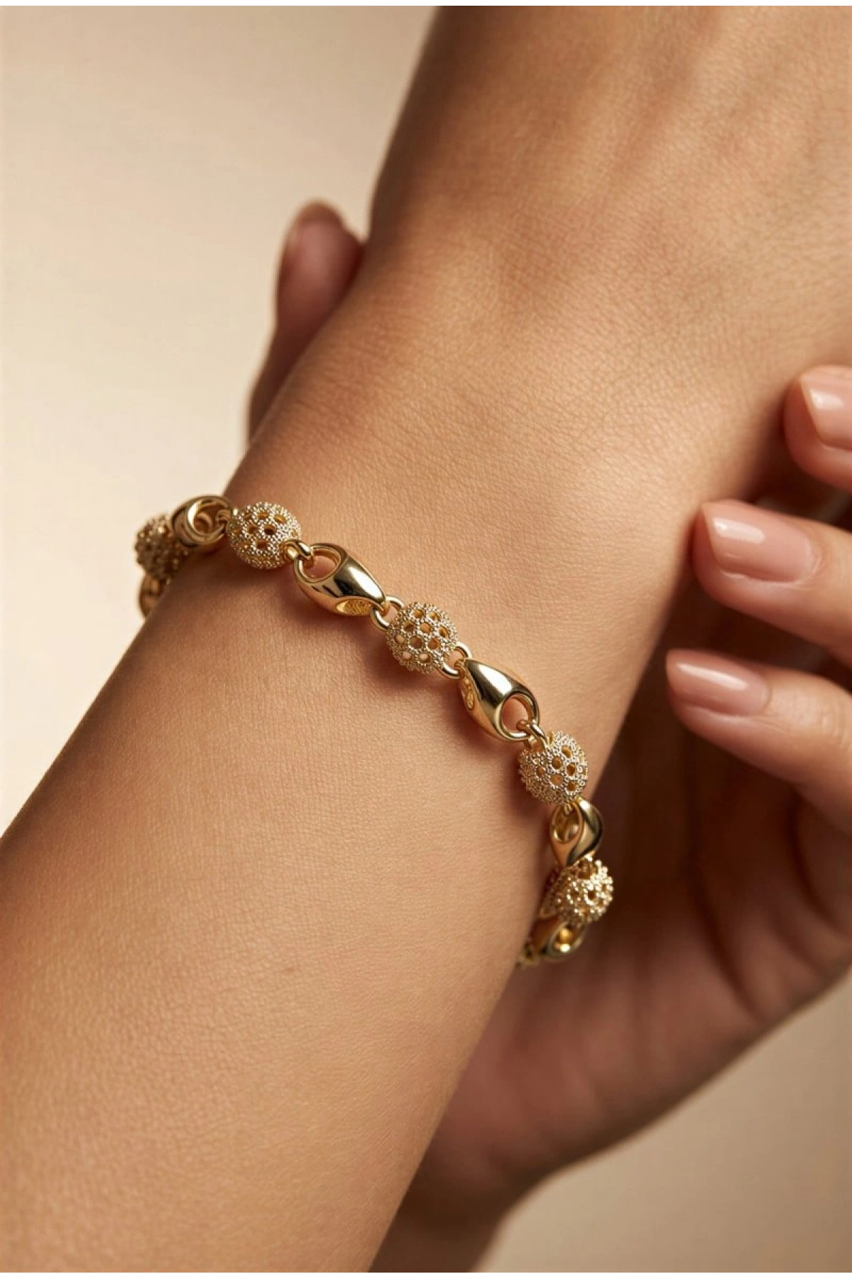Delik Top Model Gold Altın Kaplama Bileklik
