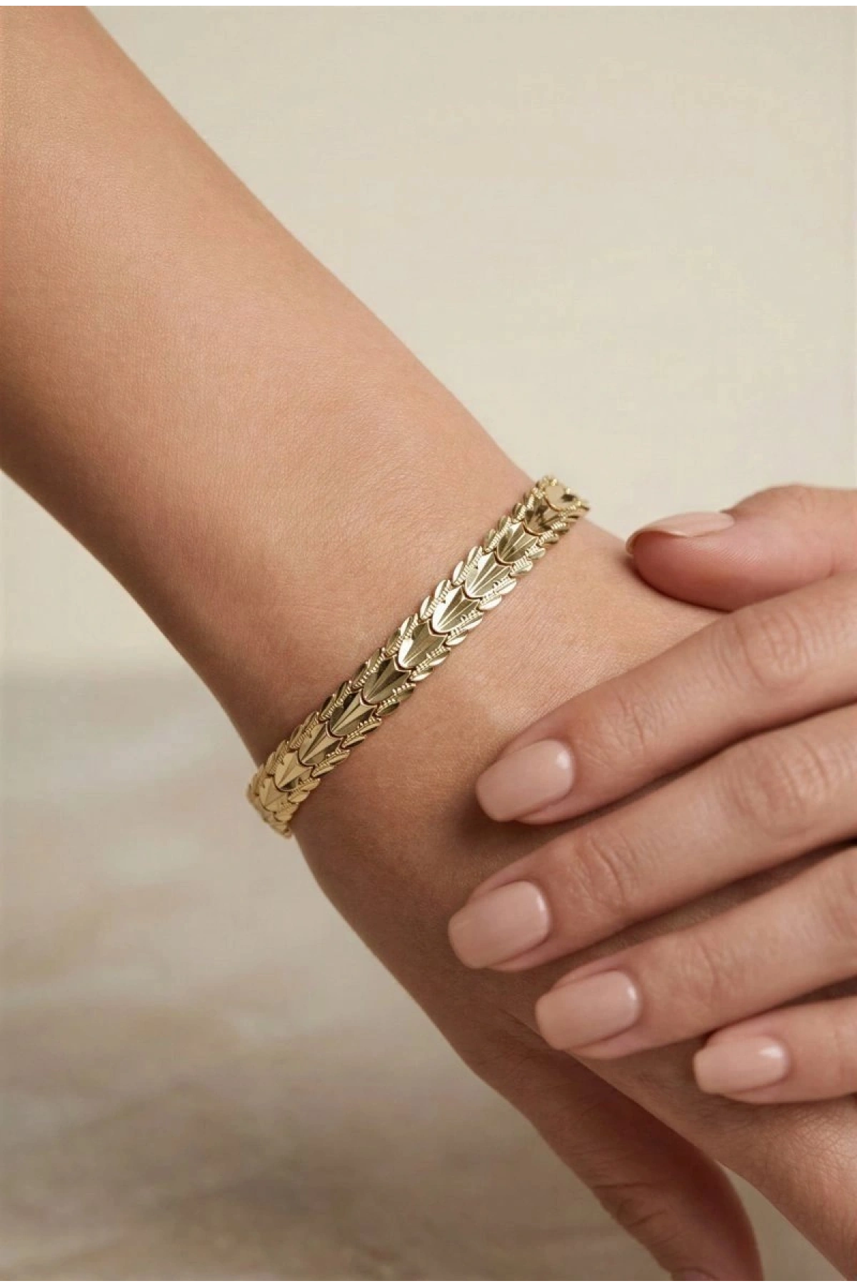 Desenli Başak Model Gold Altın Kaplama Bileklik