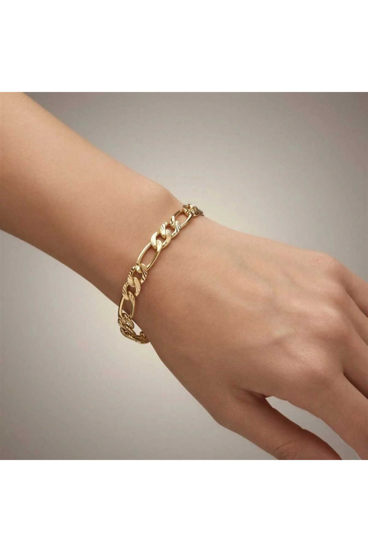 Desenli İnce Ezik Bağlı Model Gold Altın Kaplama Bileklik