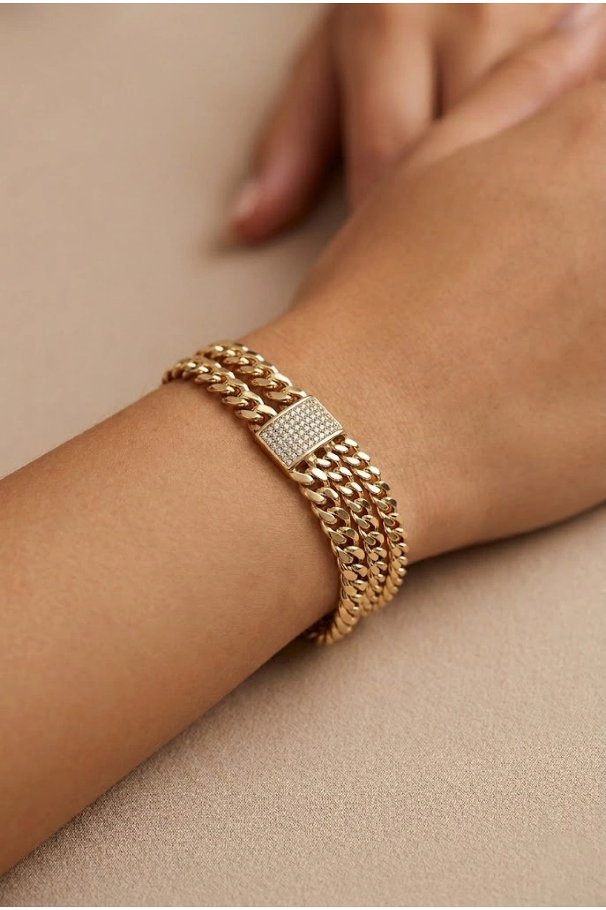 Dikdörtgen Taş Model Gold Altın Kaplama Bileklik