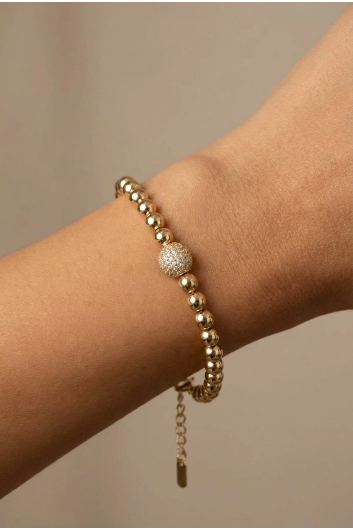 Dorika Model Taşlı Top Detay Gold Altın Kaplama Bileklik
