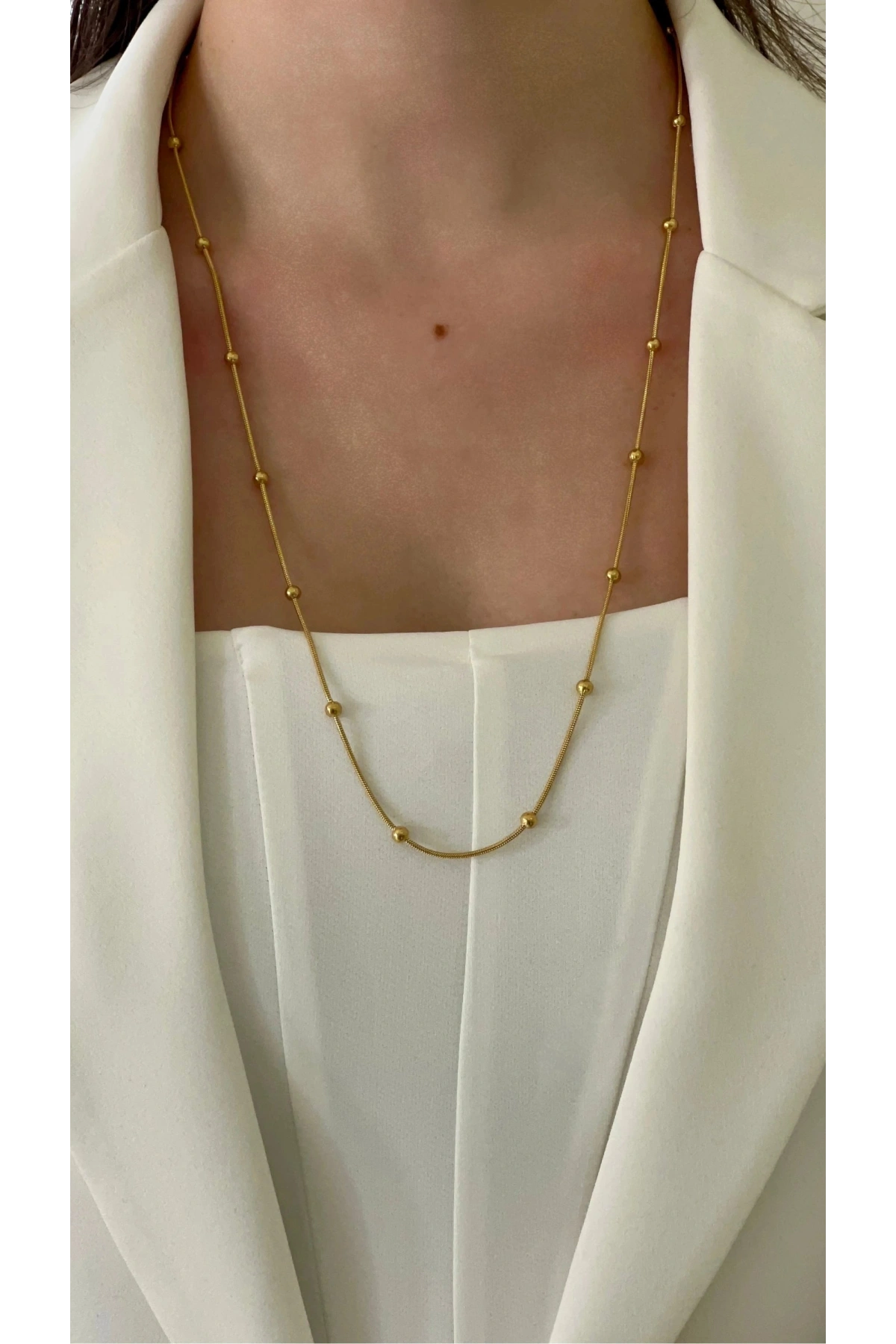Dorika Model Topçuklu Gold Altın Kaplama Kolye