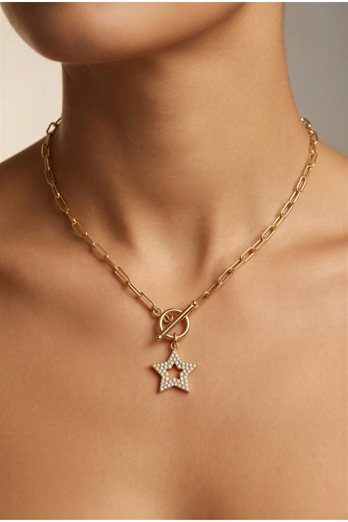 Dümen Kilit Yıldız Model Gold Altın Kaplama Kolye