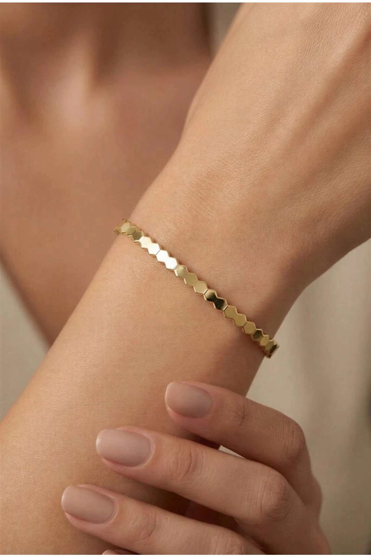 Düz Pul Geçişli Gold Altın Kaplama Bileklik