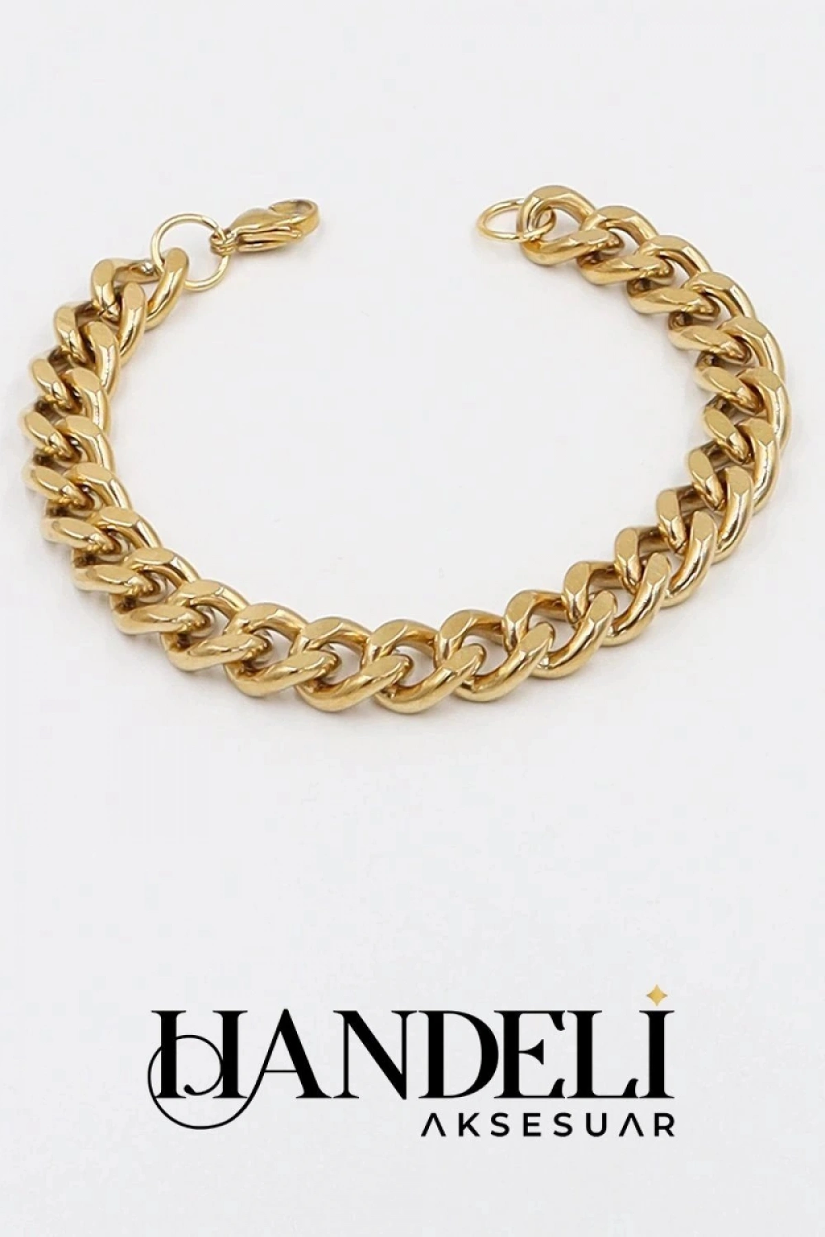 Düz Zincir Gold Altın Kaplama Çelik Bileklik