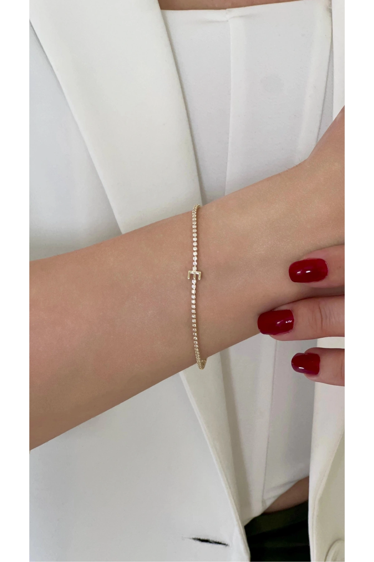 E Harf Su Yolu Detay Gold Altın Kaplama Bileklik, zarif ve şık tasarımı ile dikkat çekiyor.