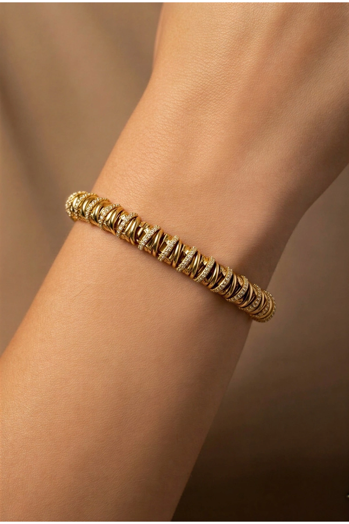 Eğik Halka Model Gold Altın Kaplama Bileklik