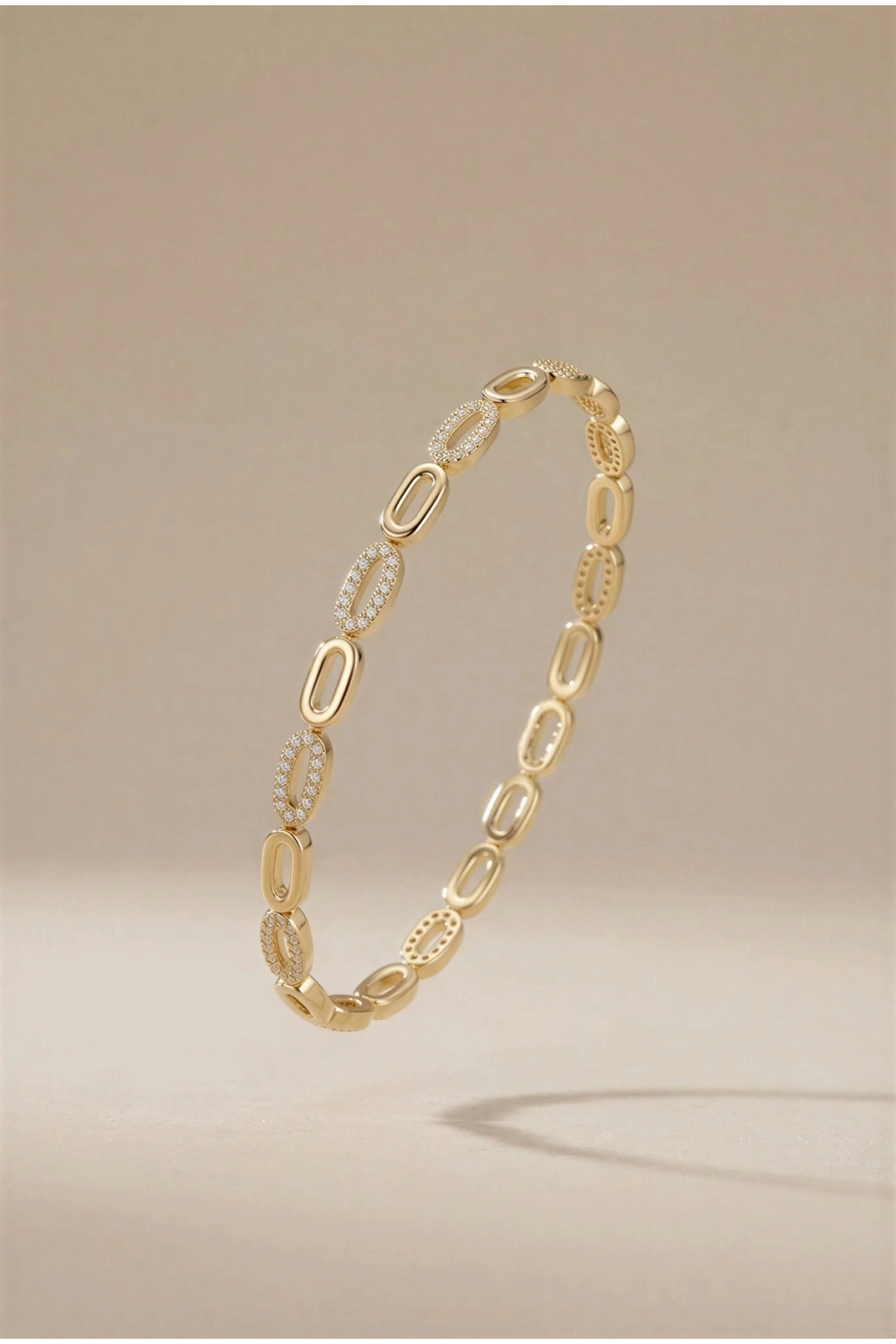 Elips Model Taş Detay Gold Altın Kaplama Bileklik