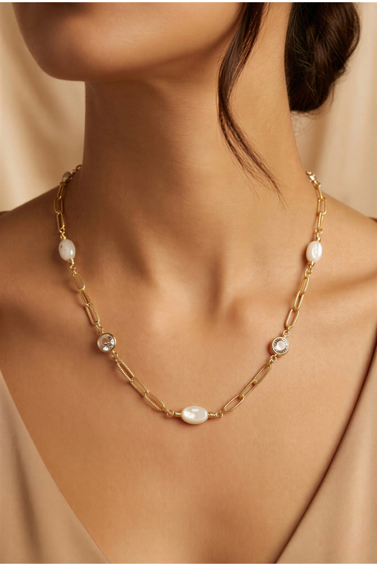Elips Sedef Taş Model Gold Altın Kaplama Kolye