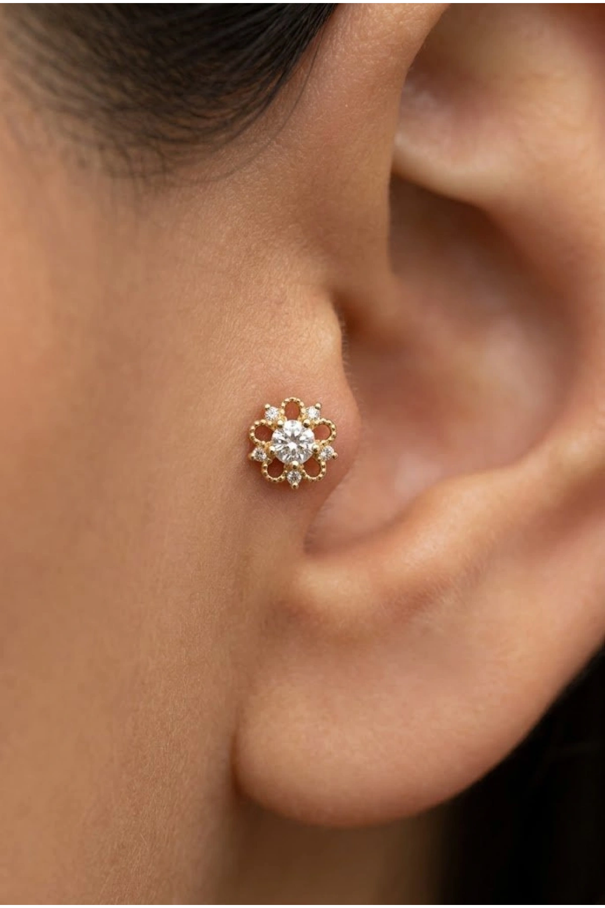 Flower Model Gold Altın Kaplama Tragus Çelik Piercing