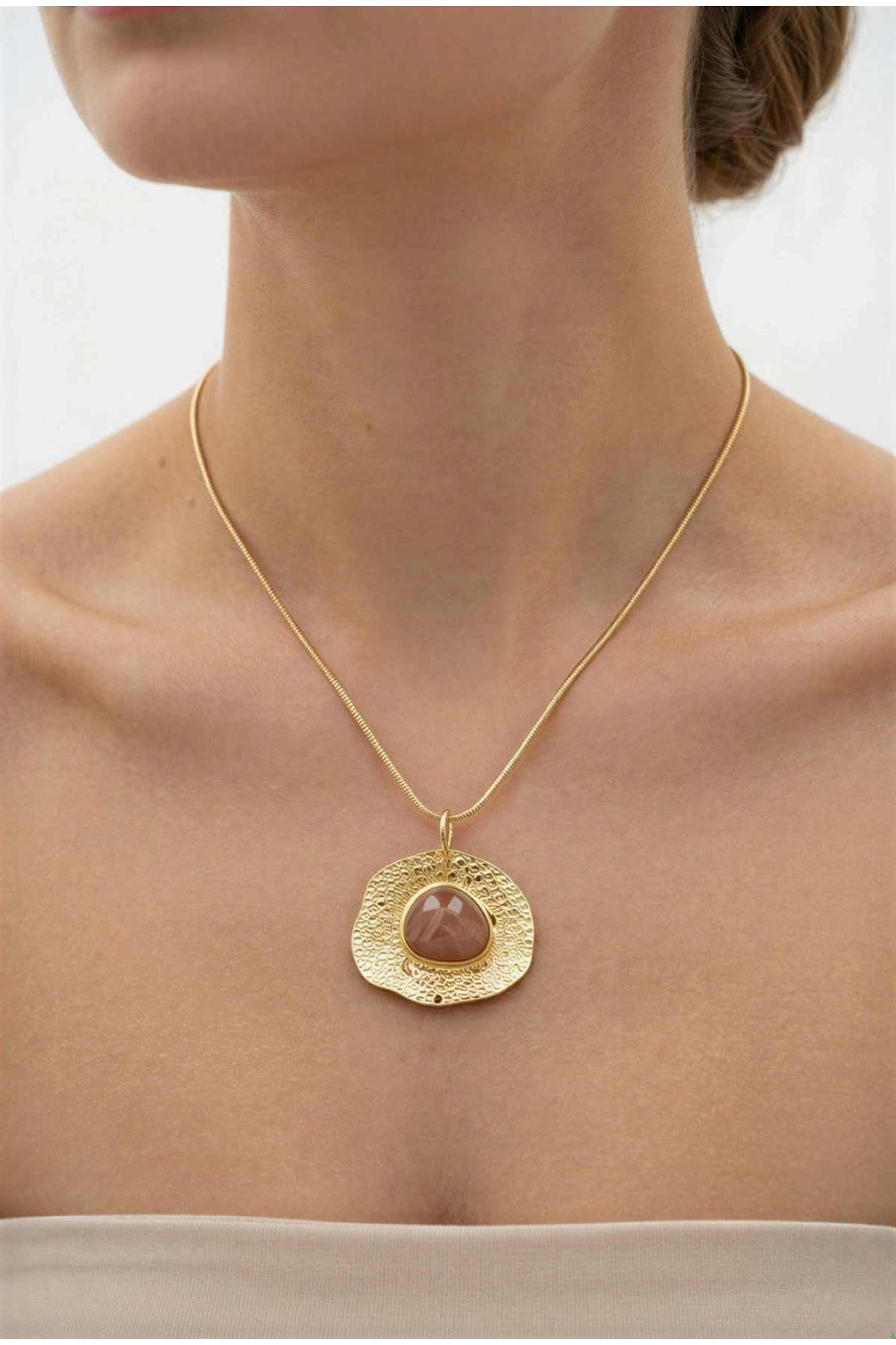 Galaksi Model Açık Kahve Taş Detay Gold Altın Kaplama Kolye