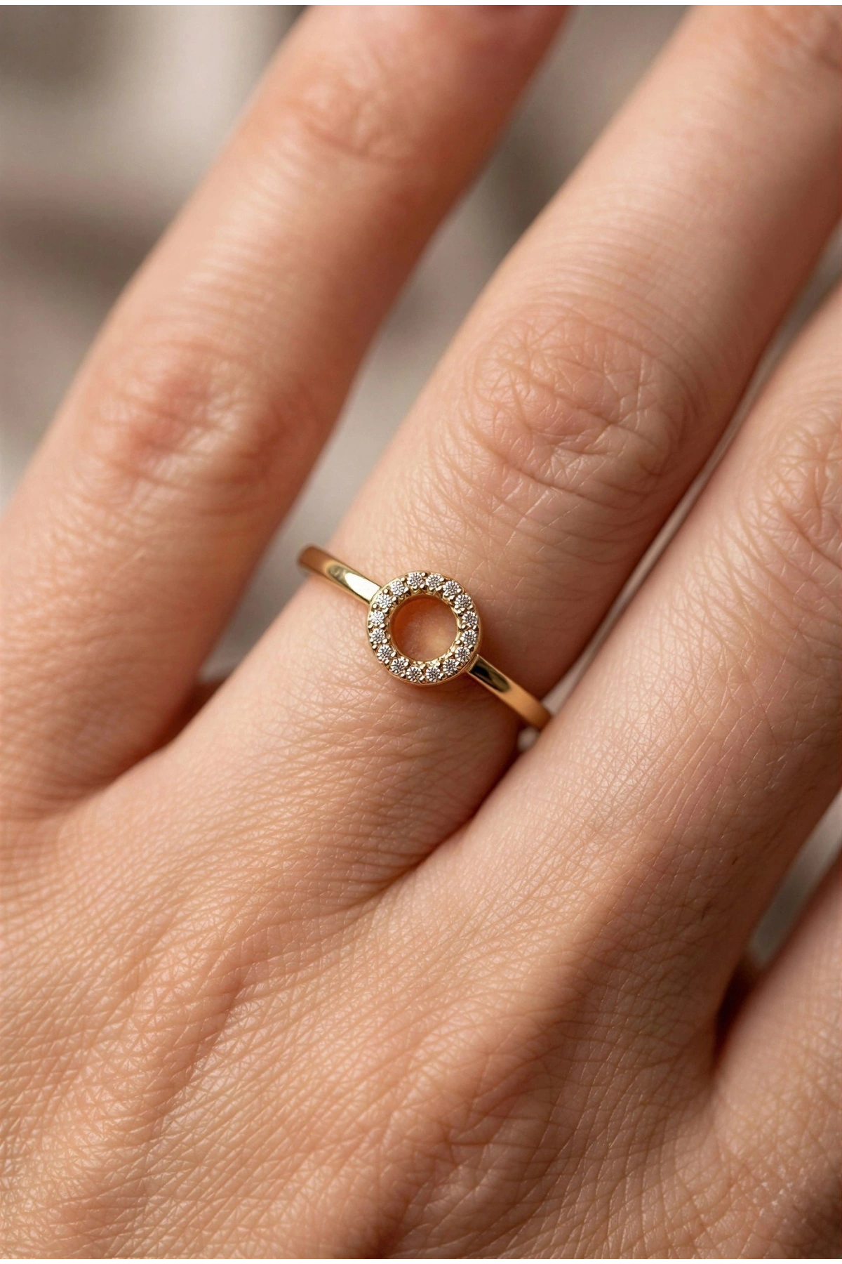 Halka Model Taş Detay Gold Altın Kaplama Yüzük