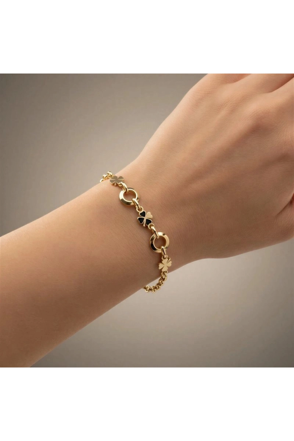 Halka Model Yonca Detay Gold Altın Kaplama Bileklik
