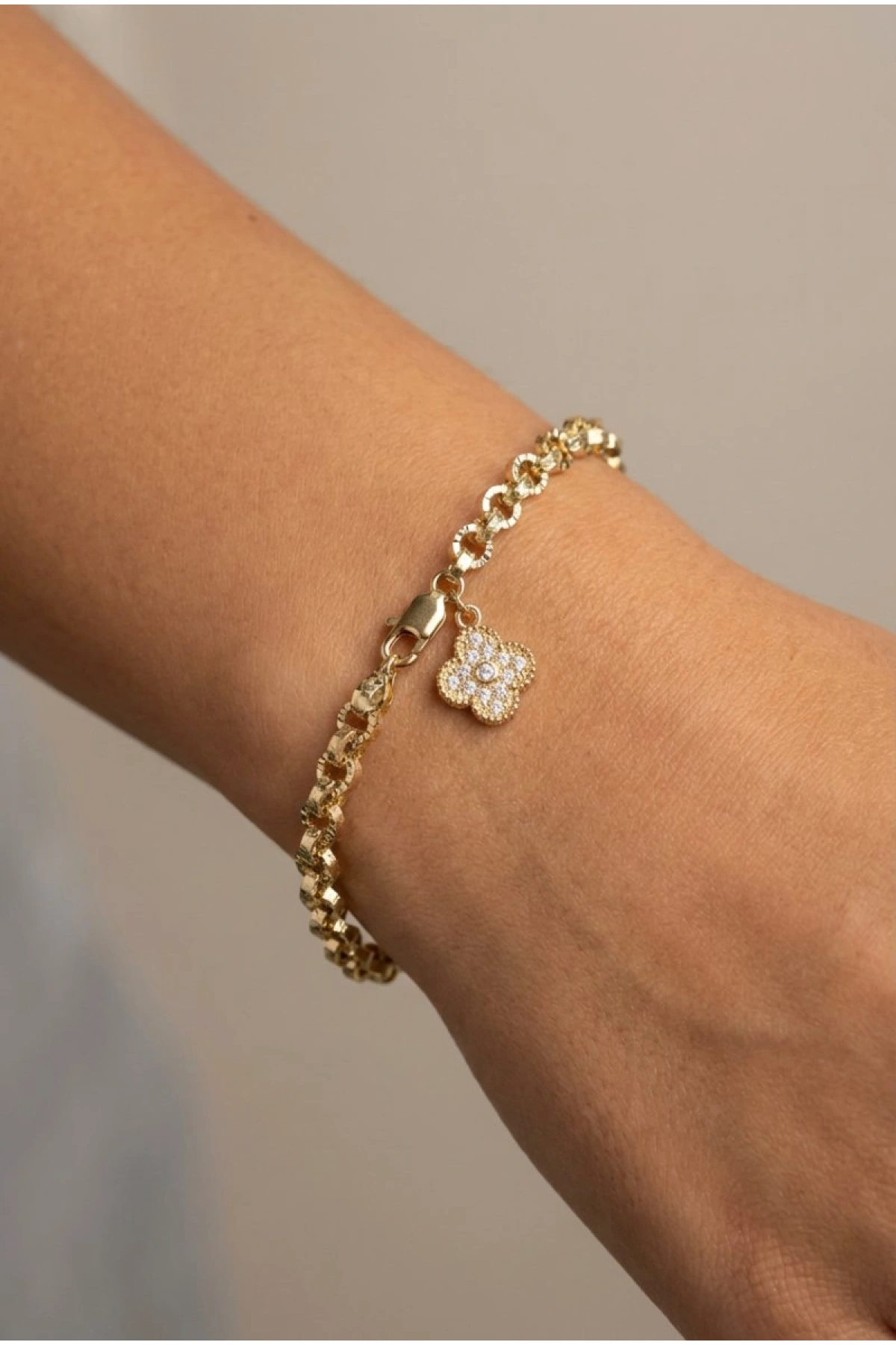 Halka Zincir Taşlı Yonca Model Gold Altın Kaplama Bileklik