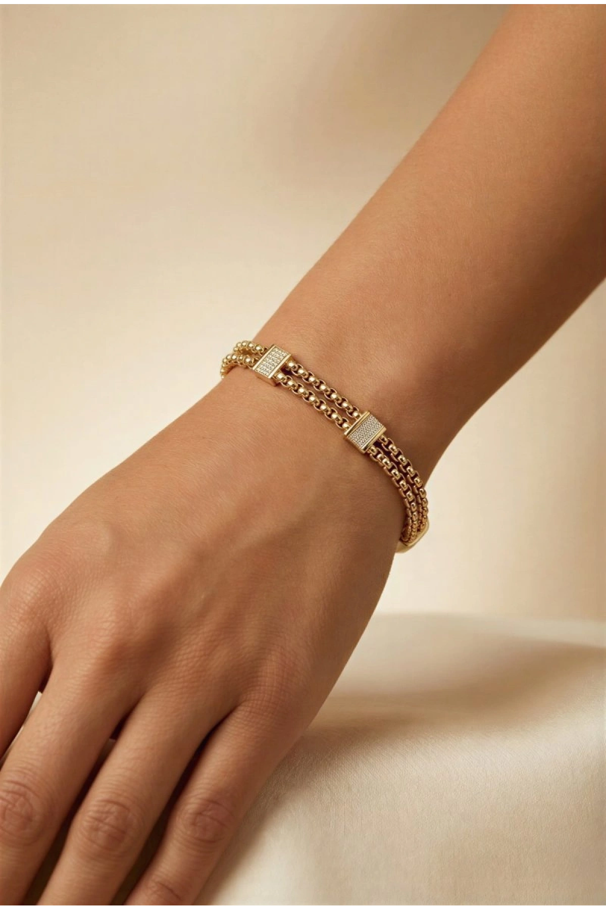 Horus Zincir Taşlı Baget Model Gold Altın Kaplama Bileklik