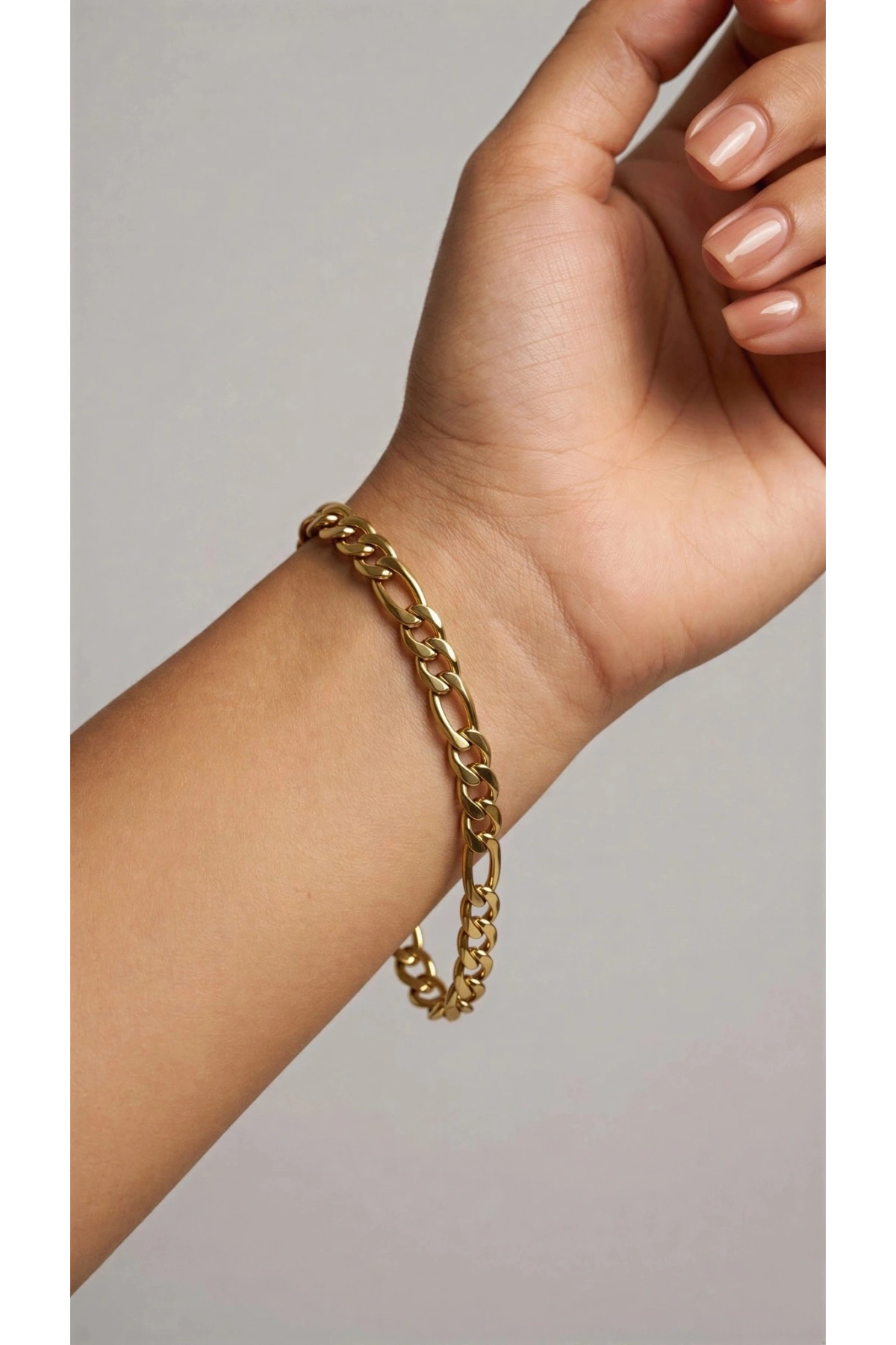 İnce Ezik Bağlı Model Gold Altın Kaplama Çelik Bileklik