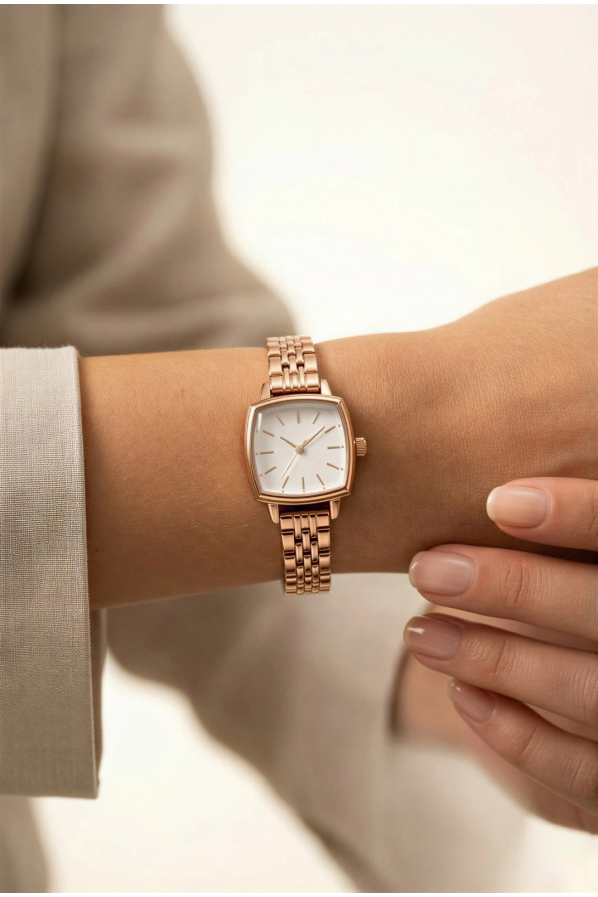 İnce Kapalı Kordon Kare Kadran Rose Kadın Kol Saati