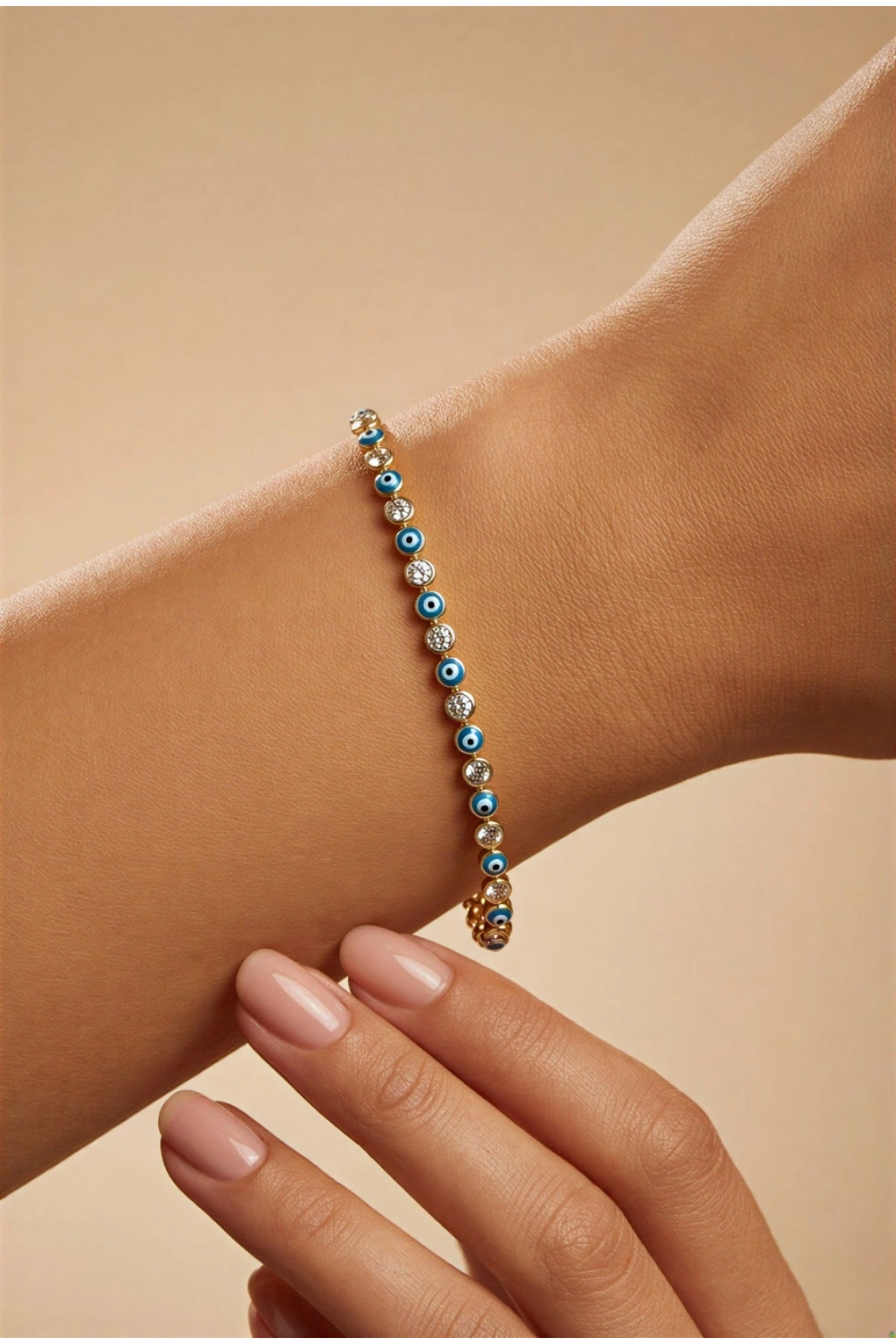 İnce Nazar Göz Taş Model Gold Altın Kaplama Bileklik